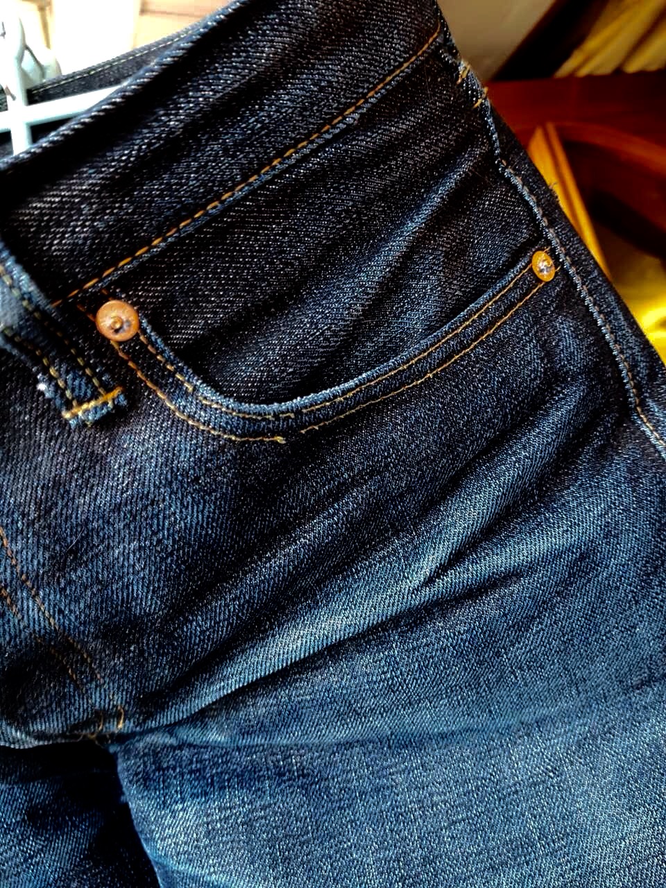 ....стежок поверхностный , не утоплен в джинсу ...да и нить х/бешная