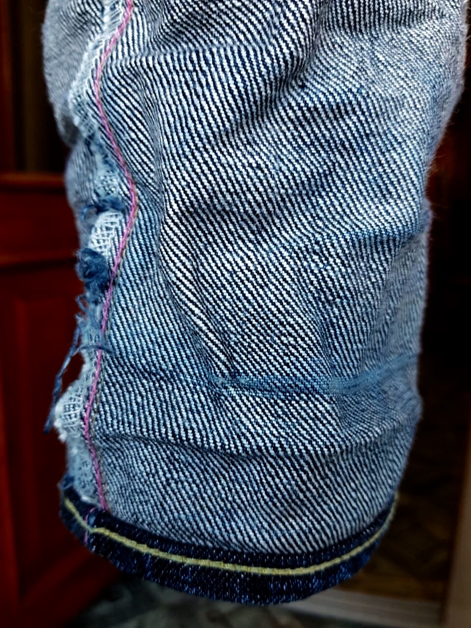 Сильно протерся низ лега в местах подворотов....наметились пробоины