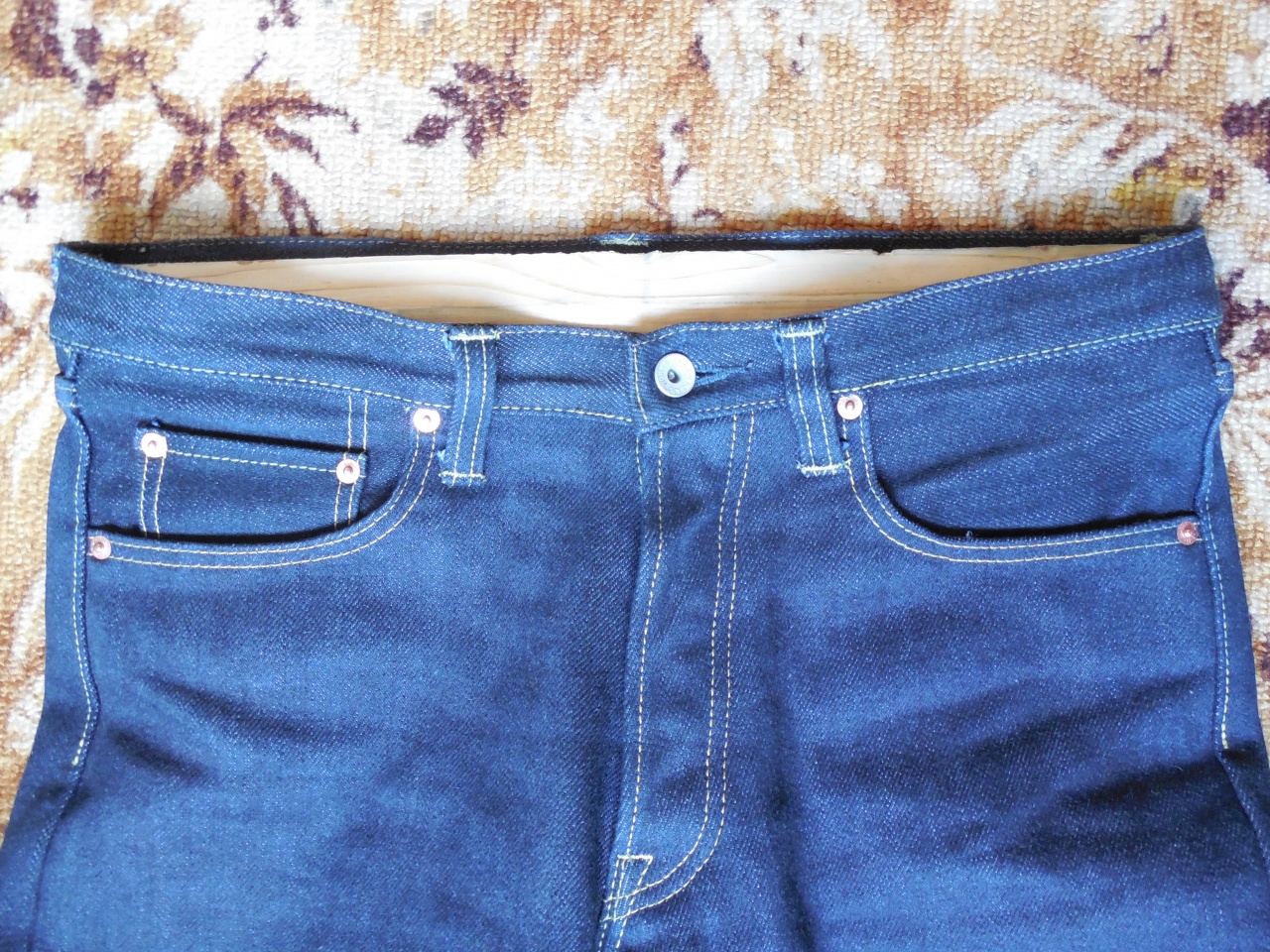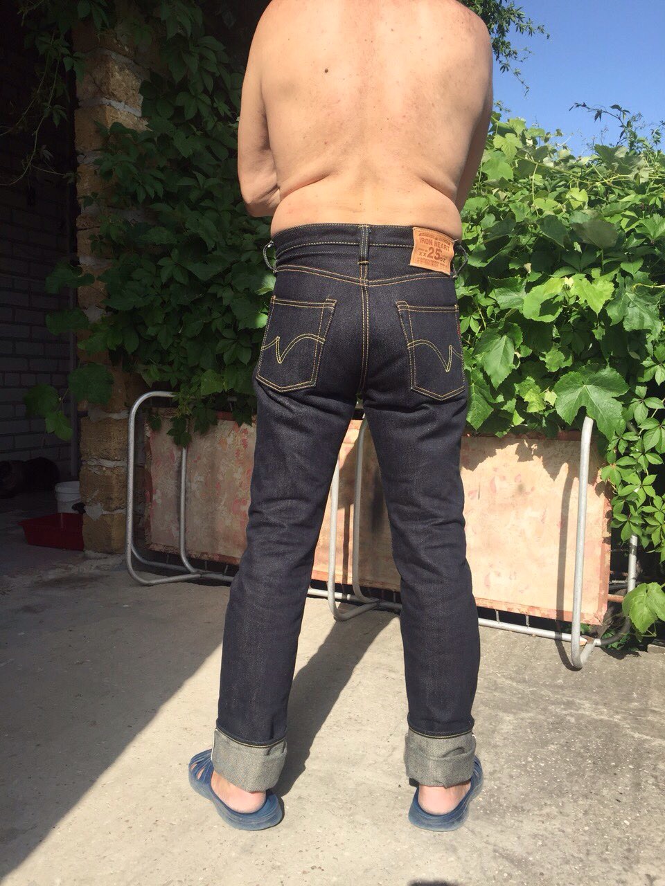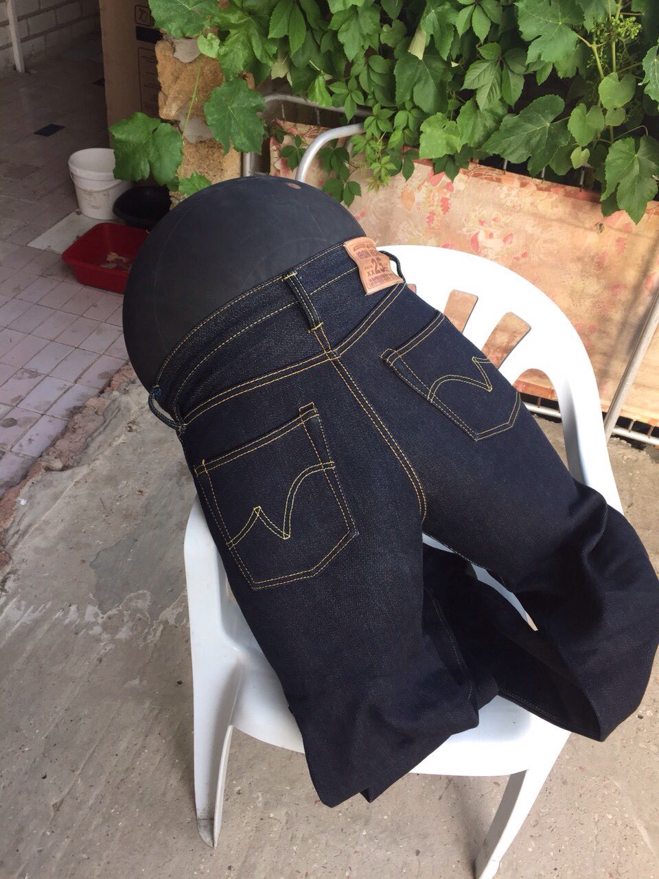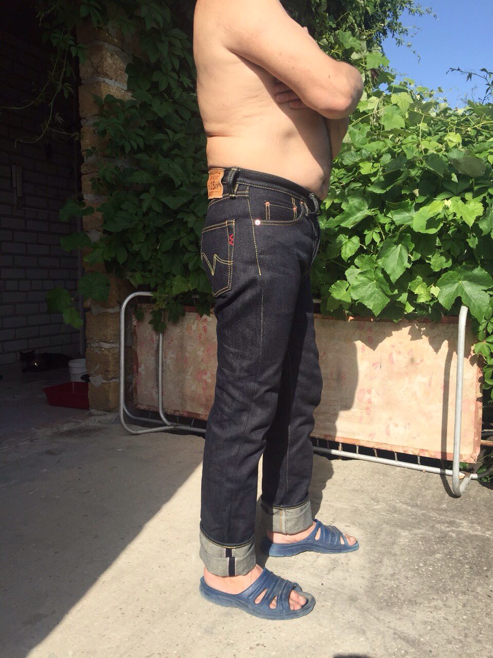 Поскольку имею неотвратимую тягу к плотному фиту, то джинсы всегда покупаю на " пределе", чтобы , в дальнейшем, с помощью усадки добиться вожделенного " облипона ". Так, с зимы этого года, были приобретены FC 1108 XX 15,5 oz, ONI 517 16,5 oz, Окаямовский сапфировый коллаб ODJB 001 18 oz, ONI 552 20 oz и S 710XX 24 oz. С размерами, слава Богу, всё получалось идеально... усадка благополучно давала нужный мне эффект " облипона ".