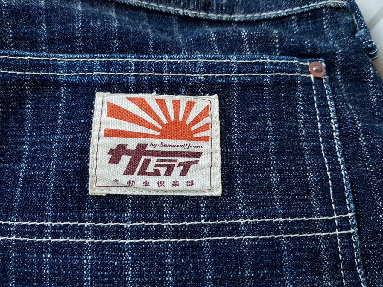 Задние карманы выполнены в классическом пятиугольном стиле. Верхние углы карманов усилены скрытыми медными заклёпками, что в настоящее время достаточно широко распространено среди различных брендов, но является классическим элементом большинства японских джинсов. Джинсы не имеют арок или иных вышивок.