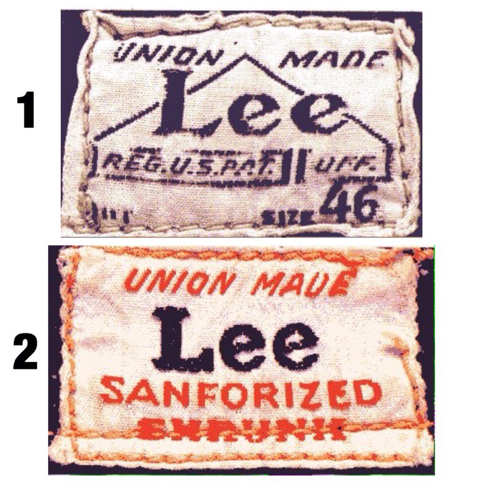 2. Лейбл середины 1930х годов, который был обнаружен на самой первой "ковбойской" куртке, известной как - Type 1. На нем есть пометка "Union Made" и "Sanforized Shrunk" - последнее выделяло Lee среди многих компаний - их деним был предварительно усажен.