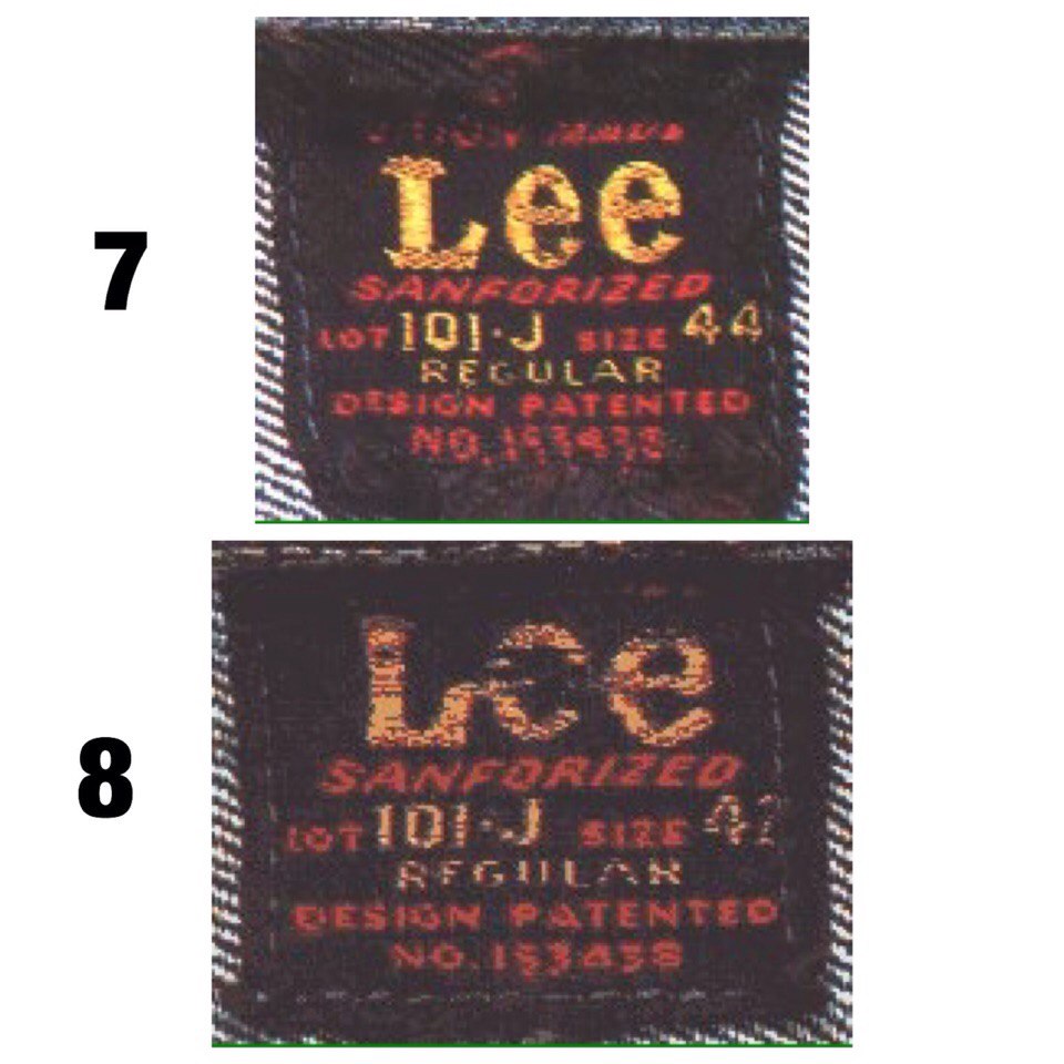 5. Послевоенный лейбл 1946 года. Присутствовал на первых куртках 101J с двумя карманами. В слове "Lee", буквы "ee" располагались без наклона.
