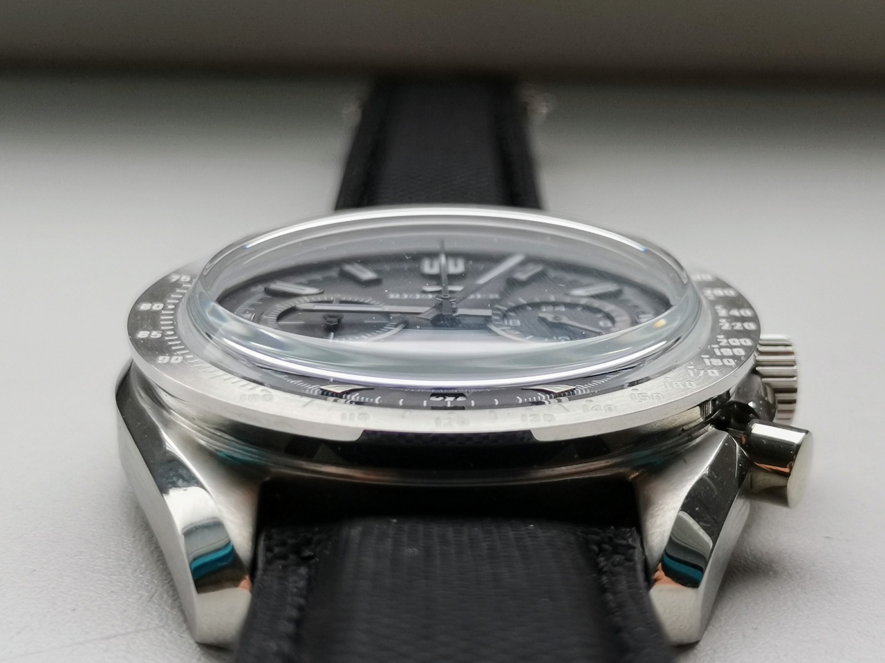 Не люблю большие часы, тк запястье узкое, но рифы покорили меня! Диаметр у них 44мм по корпусу и 42мм по безелю, размер lug to lug 50мм, получается, что визуально они выглядят меньше, чем на самом деле.