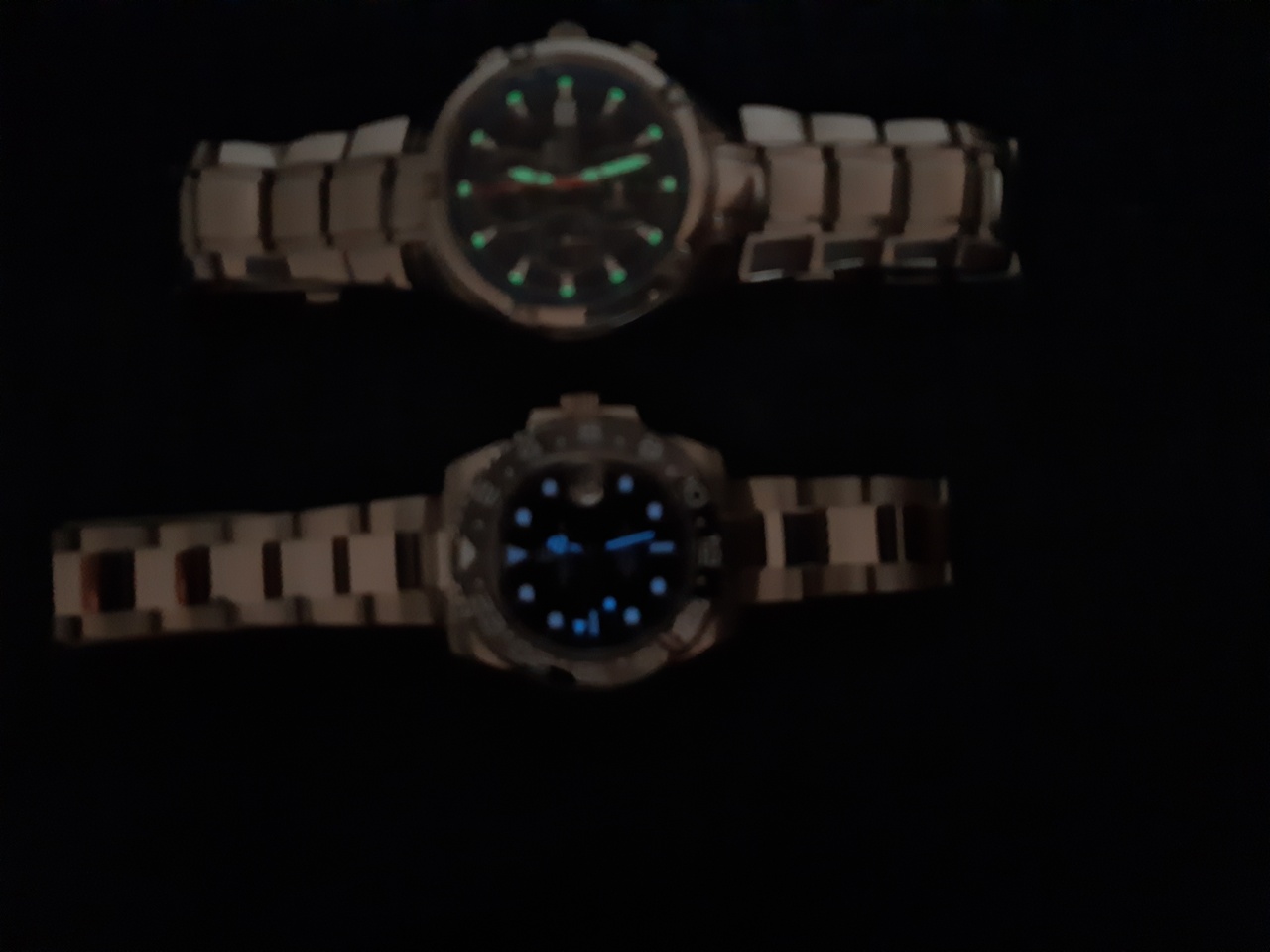 В целом часы выглядят вполне себе прилично. Видимо сказывается стекло типа сапфира. Цифер чисты, без мусора и кривых меток. Про точность хода сказать пока ни чего не могу, по понятным причинам, но что сразу бросается в глаза - это несоответствие меток на безеле и цифере. Проблема известная и неудивительная. Второе это браслет. Ну он просто дрянь. Погремушка еще та. К слову, подобного на первых часах не наблюдалось естественно. Наоборот, они с браслетом были как единое целое, а тут ... Люм, ну тут цвет его на любителя и сомневаюсь в том, что он хоть как-то долго продержится. Поэтому тем, кому все же нужно что-то поприличнее PD, делайте вывод. Это лично мое мнение, ни кому не навязываю его и не хочу оскорбить чувств поклонников этой надписи на часах.