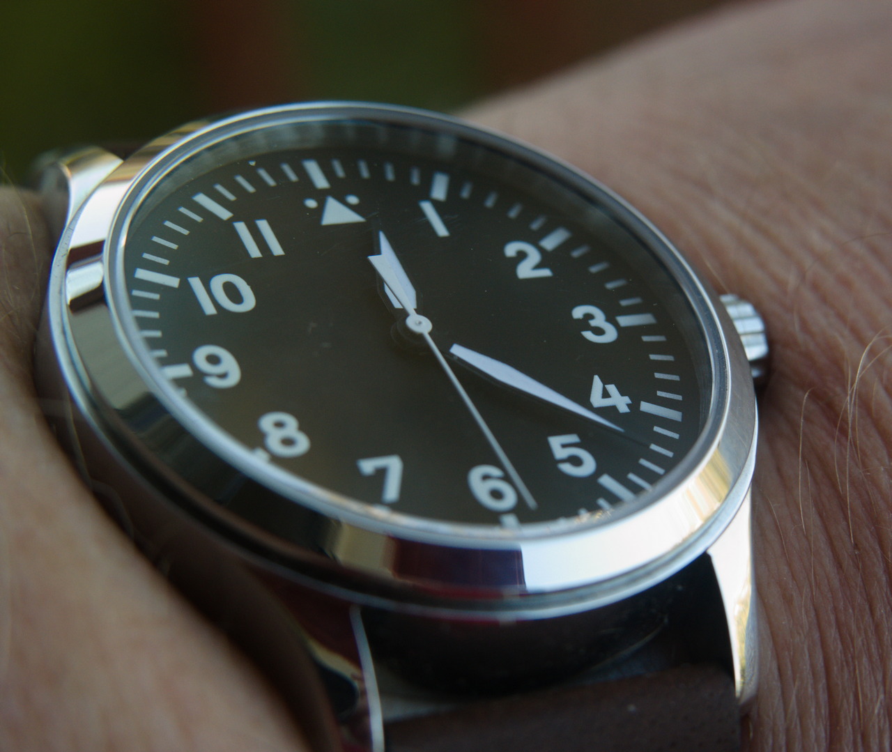 Я в субботу забрал с почты двое часов (одним пакетом). Про одни выше рассказал, вторые а-ля "флигер". На снимках видно, как мал ремешок, но это в подарок младшенькому, а у него запястье не скоро дорастёт до 23+см. Ремешок пропитал льняным маслом, 2 раза - впитывает, как губка, предполагаю, что до ДР даже вернётся изначальный "сухой" цвет. Смысл - я их новые пытался надеть, не смог попасть в пряжку - такой был жёсткий, что аж короткий, а масло сильно размягчило и я натянул аж до 3-го отверстия, м.б., даже растянулся бы.