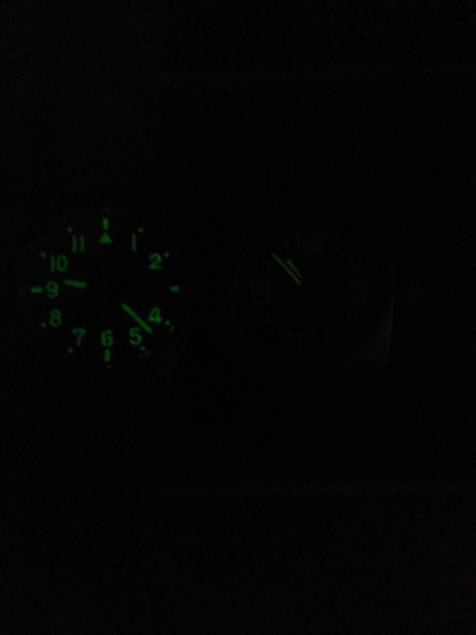 Итак, для любителей сказок о китайском люме и рекламных фото. На первой картинке слева часы со швейцарским суперлюмом, справа с китайским толстым слоем и большой площадью. Вторая картинка- фото после засветки телефоном. Третья- через 2 минуты. Четвёртая- ещё через две. Делаем скидку на смартфон, но часы слева сохраняют остаточное свечение до утра ( хоть и очень слабое, но различимое ). Часы справа- несколько часов, но очень слабо.