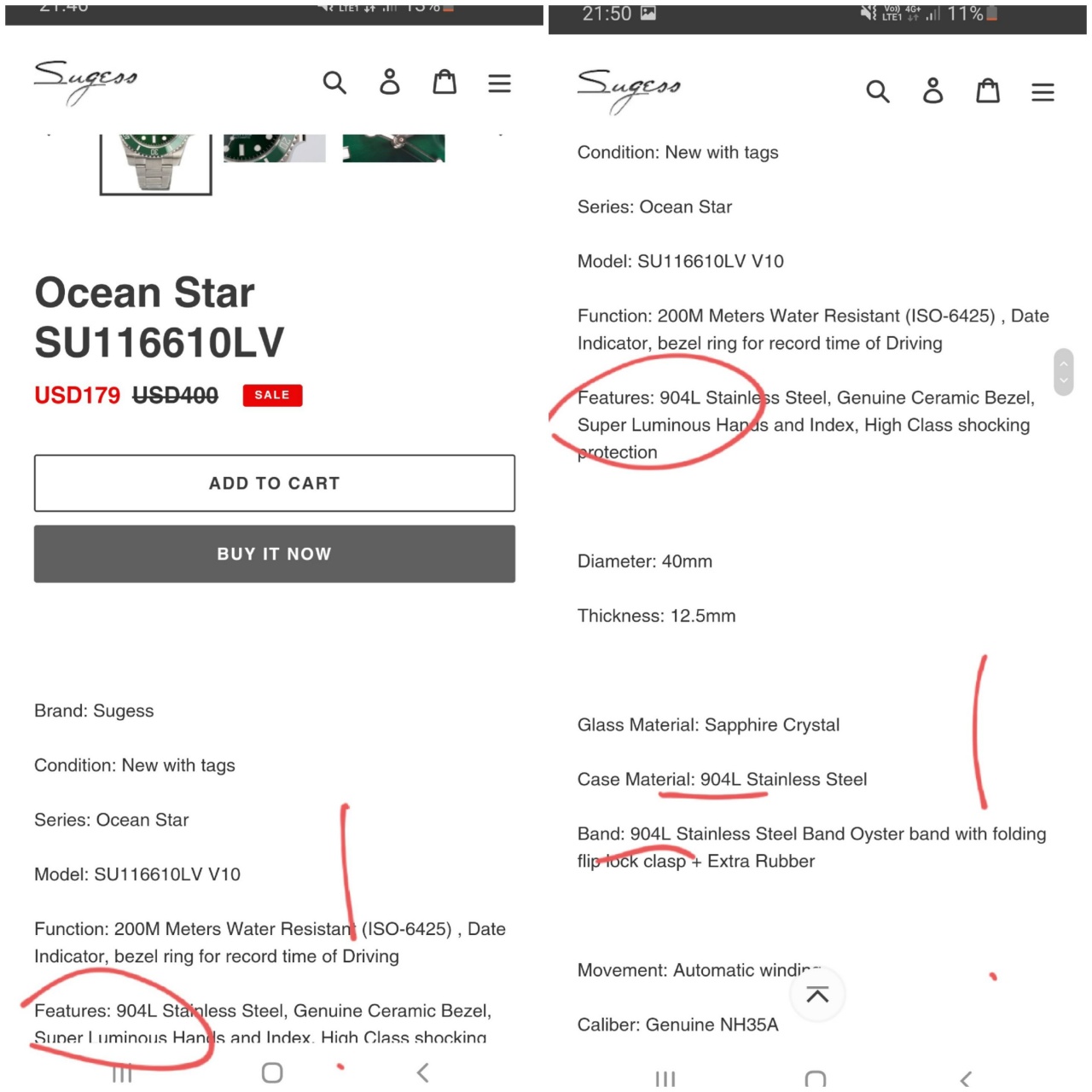 Внимательный,найдет и тот момент что например "дайтона" 116500 на азиатском 7750 уже идет с 316L у них,и это везде указывается четко!