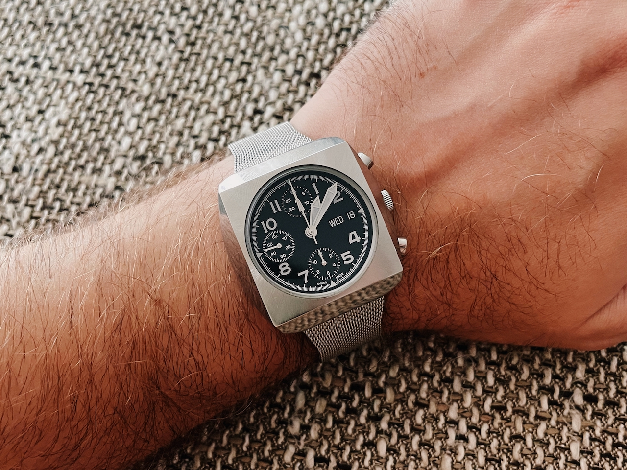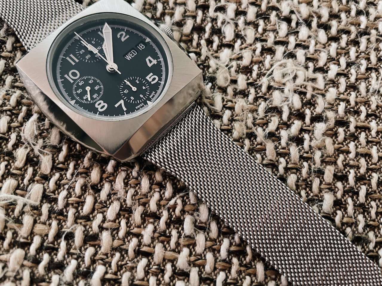 Короче, оно приехало: меш-браслет с сужением (!) от 22 мм у ушек к 18 мм у застёжки. Вот