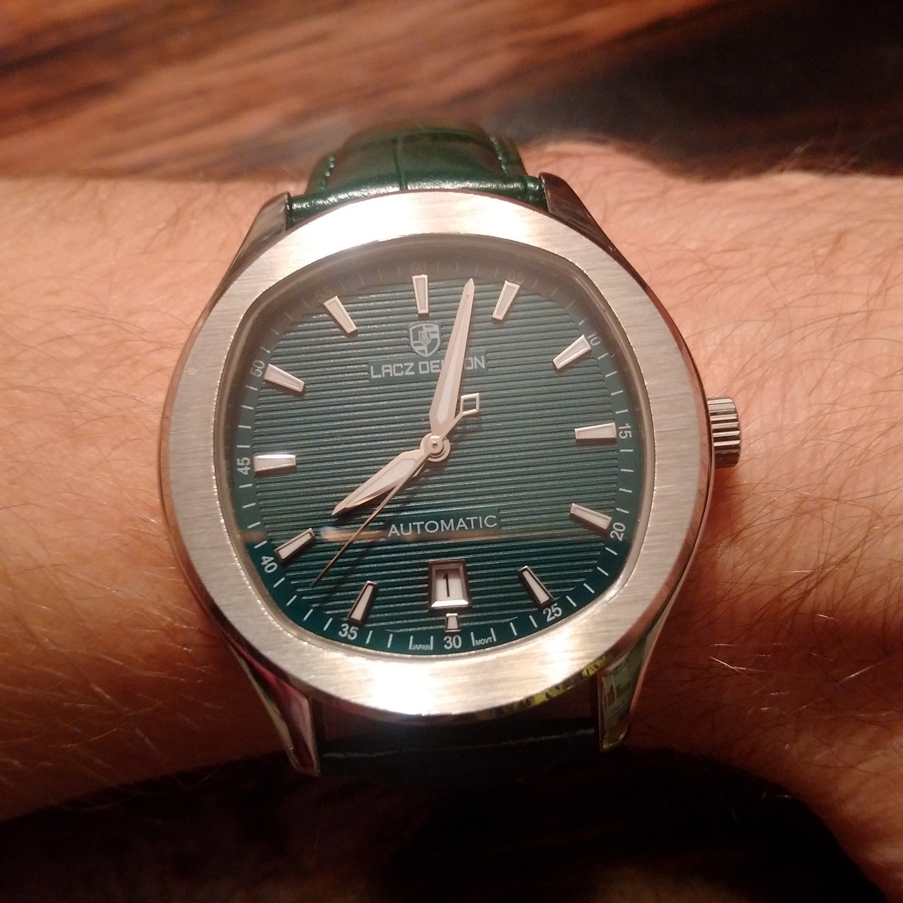 мои первые часы с Али, ну или вернее первый хоммаж с Али. пару-тройку лет ходил с мыслью решиться на хоммаж патековского наутилуса, что он за это время, практически разонравился, и тут увидел эту красоту. странно, что из оригиналов, по картинке, изначально меньше остальных нравился, казался недопатек, недороялоук, а вот жеж на! - зеленый цифер, и я "поплыл"