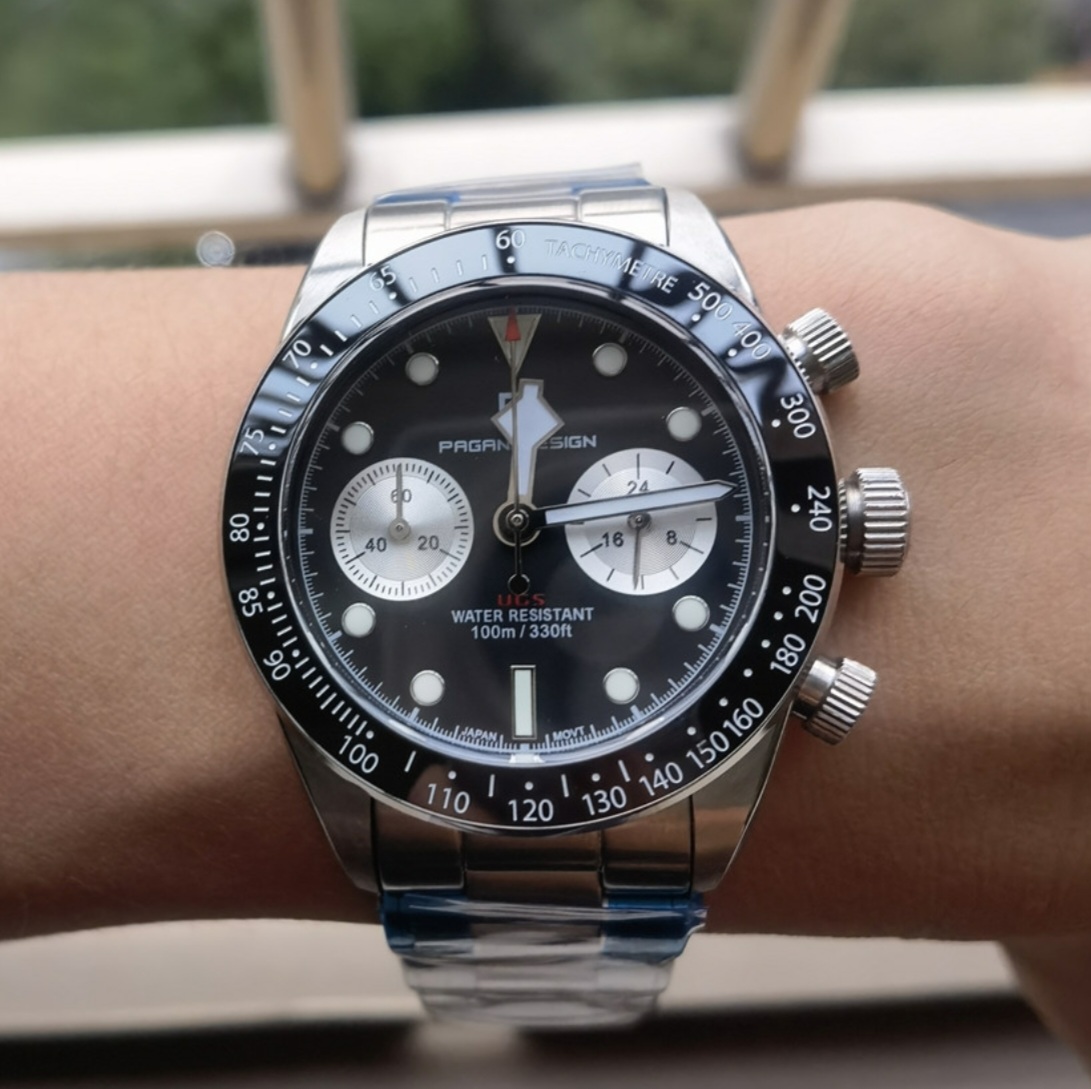 US $100.00 | Шварц Bay VK64 кварцевые часы хронограф черный циферблат 39 мм минеральное стекло Алюминий ободок световой указатель Сталь браслет 01