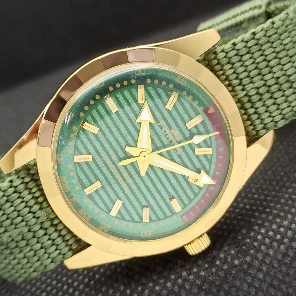 В общем, я прошу совета для выбора цели неспешного хотения и планирования. Хочется зеленого с золотом циферблата, умеренно-костюмного размера.