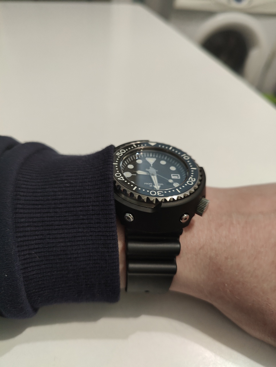 Безель как рифленый за счет нанесенных выпуклых цифр (может цеплять шерстяной рукав). Цифер чистый-читаемый, на фоне затемненного безеля выглядит зрительно не большим, как и сами часы выглядят на руке компактно. Головка с резинкой, пружинит от резьбы. Глаз не кривит. Браслет норм - звено убрал сам. Застежка с торцов острая. С браслетом часы весомые – 160гр. Стоп-секунда работает. За 2 месяца часы приработались и стабильно показывают +14с (+/-2 c) в сутки. Открывалки для такой крышки нет, уже бы всЁ отремонтировал