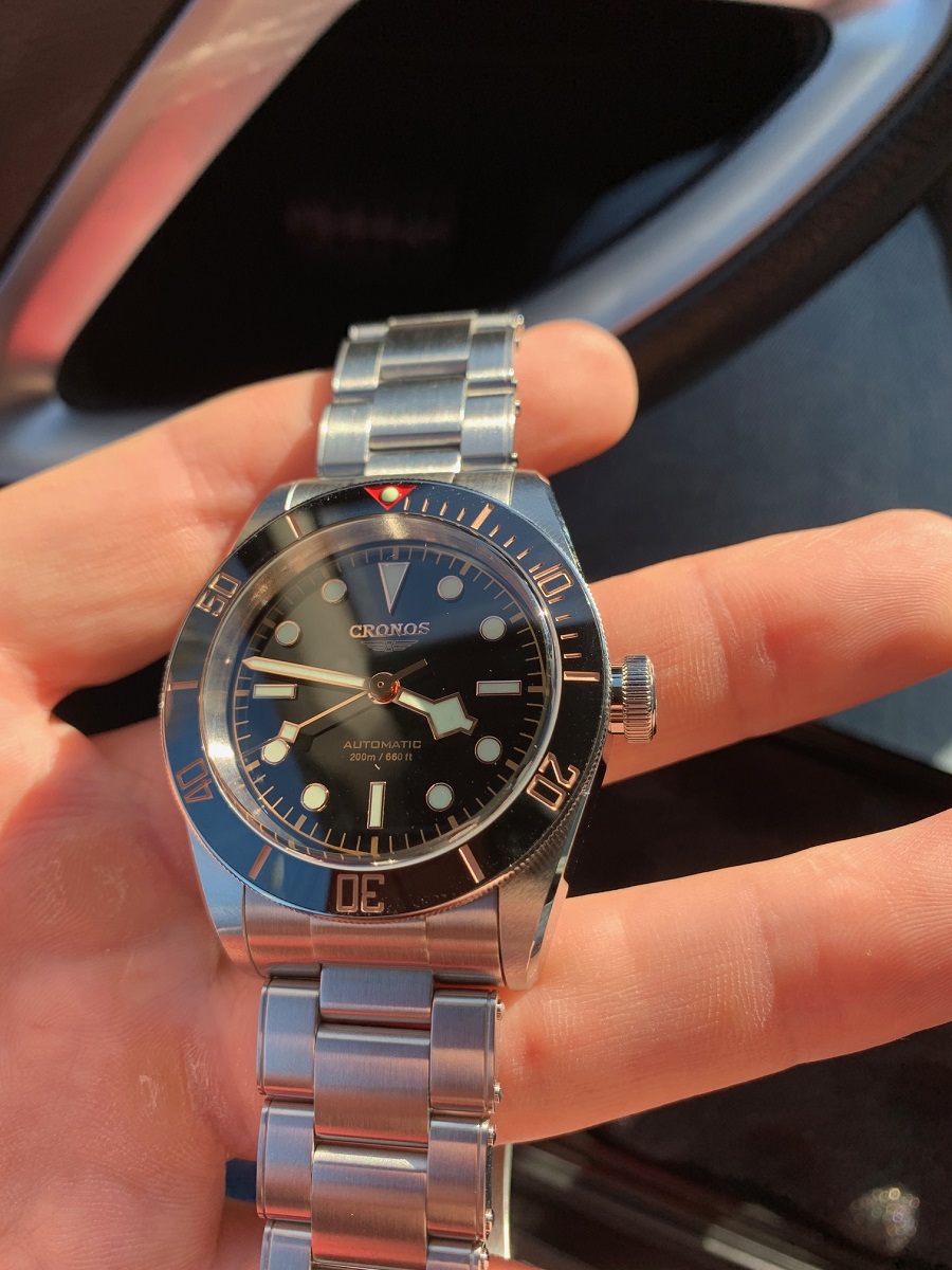Хвалюсь, получил Cronos BB. На данный момент это лучшие часы с Али которые у меня были и по уровню отделки и подходу к деталям. Думал взять GMT San Martin, но решил взять эти, так как часы до 40 мм поднадоели. Да простят меня фанаты San Martin, у самого их 3 штуки, но они выглядят скорее как заготовка для часов, а не часы, не хватает изюминки или детализации. У кого крупное запястье и кому нравится Black Bay, рекомендую к покупке, настоящие мужские часы в комфортном размере 41 мм, толщина 14,45мм. Имеются в сете Maurice Lacroix Pontos S Diver и хочу сказать, что эти часы сделаны лучше.