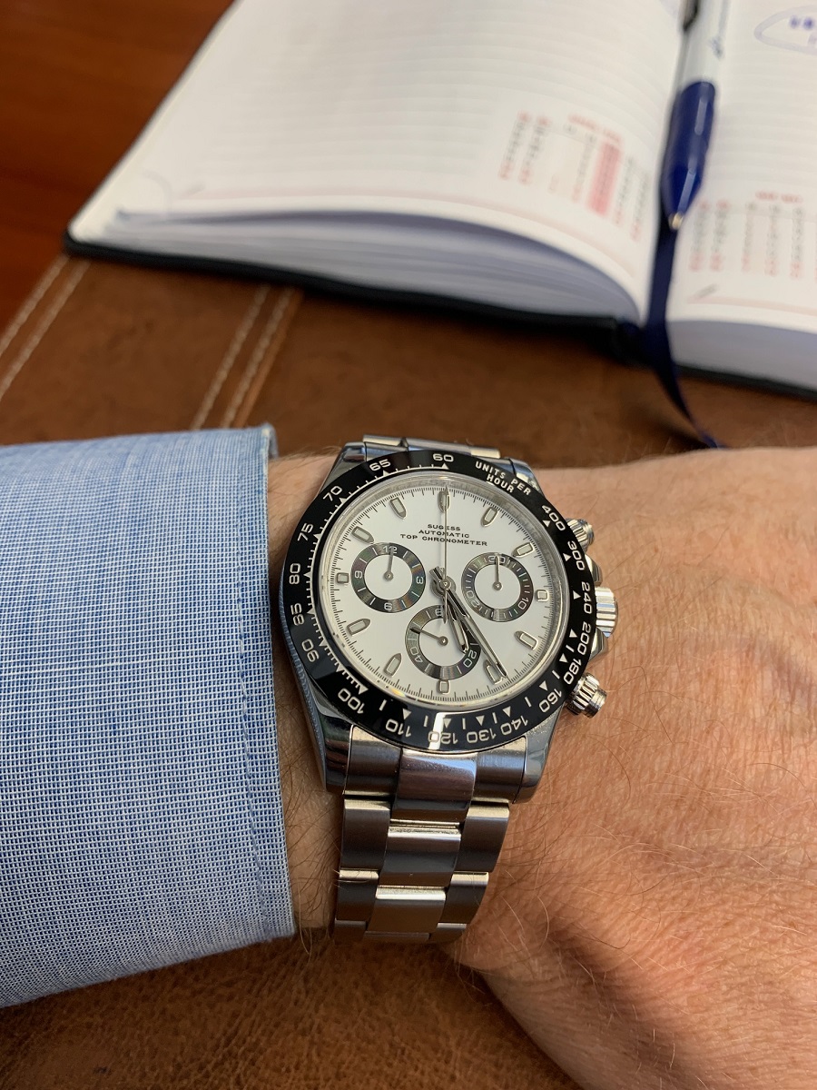 Очередная обновка, покупать не планировал, но увидел на Авито и решил почему нет. Это V2, сейчас Sugess торгует V3 которая вроде как тоньше и надписи на цифере немного другие. Меня толщина не смущает, часики очень приятные. Нравится сочетание цветов. Хорошо идут и под рубашку и под шорты. Компактные, но за счет пушеров ощущаются крупнее. Жалко нет глайдлока как у Саба, вещь удобная. Надо будет занести часовщику проверить насколько они герметичны.