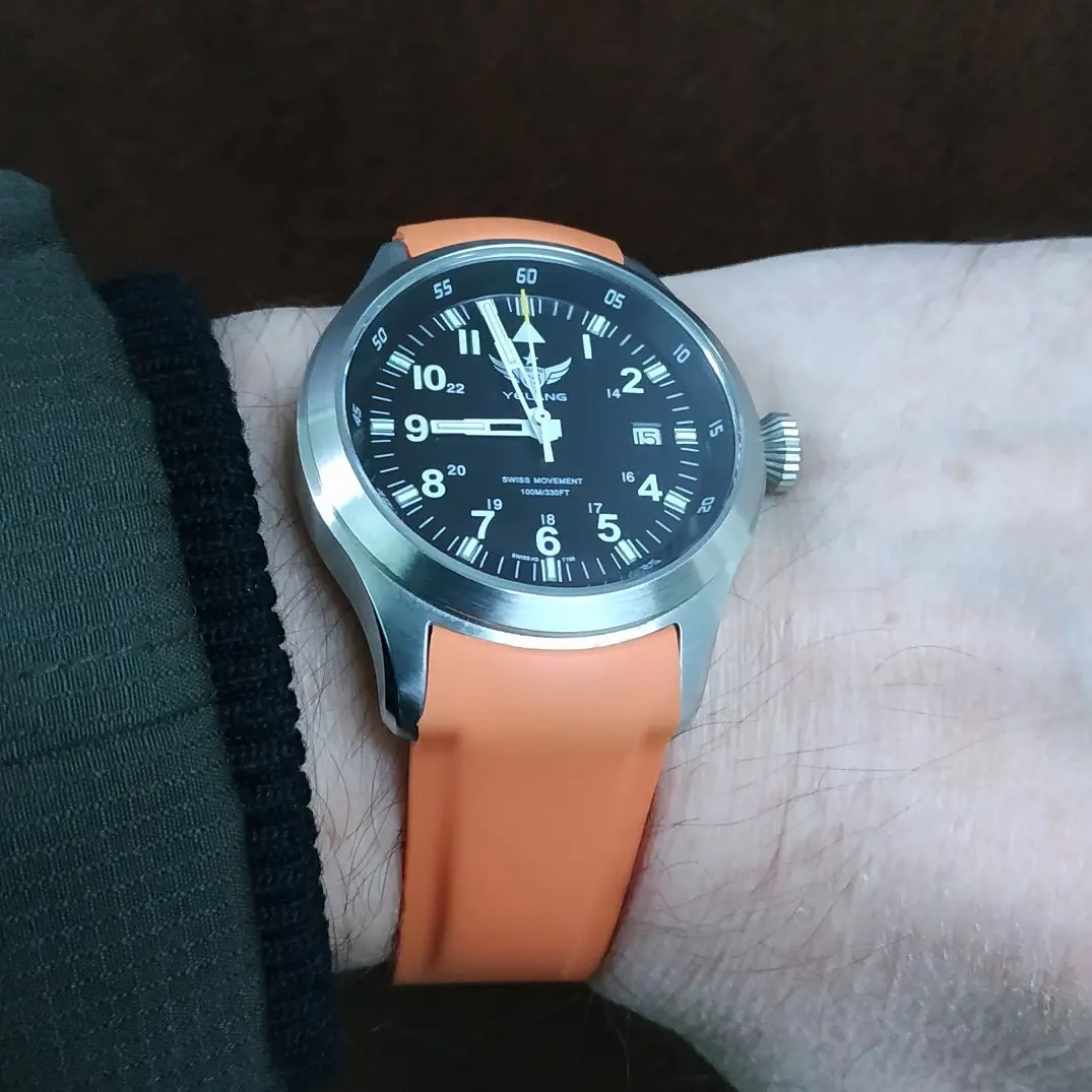Пожалуй, мои самые любимые часы из моего набора, вот в них всё классно, вот по мне всё, что нужно. Читаемость в темноте - просто бомбическая и всю ночь.