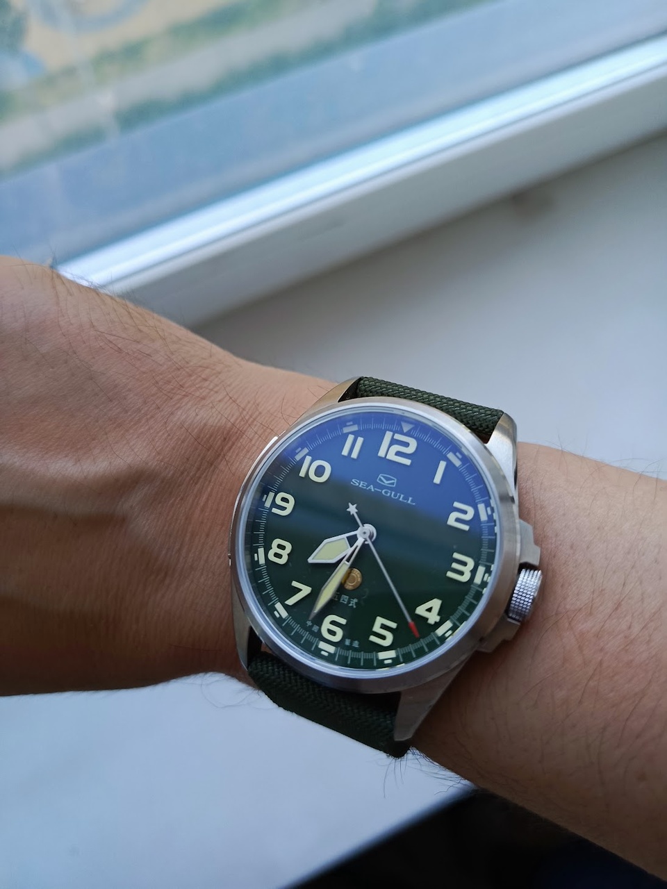Могу объяснить почему так. Sea-gull делал часы. Китайские филды. На них время видно в любых условиях освещения, потому что иначе они не филды. Ночью хуже, потому что люминофор неяркий. Правда яркий на филдах и не должен быть, они не дайвер всё же. Часовой, светящий часами, примерно так же хорош, как и курящий часовой.