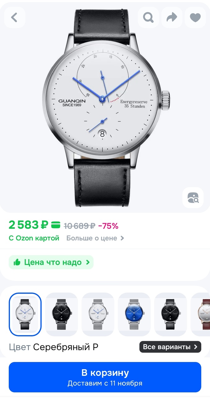 Ну или не турбийон, а механика попроще, но все таки с усложнением, сталь, сапфир, усложнение в виде индикатора запаса хода (хомаж лямбды) Guanqin GJ16106