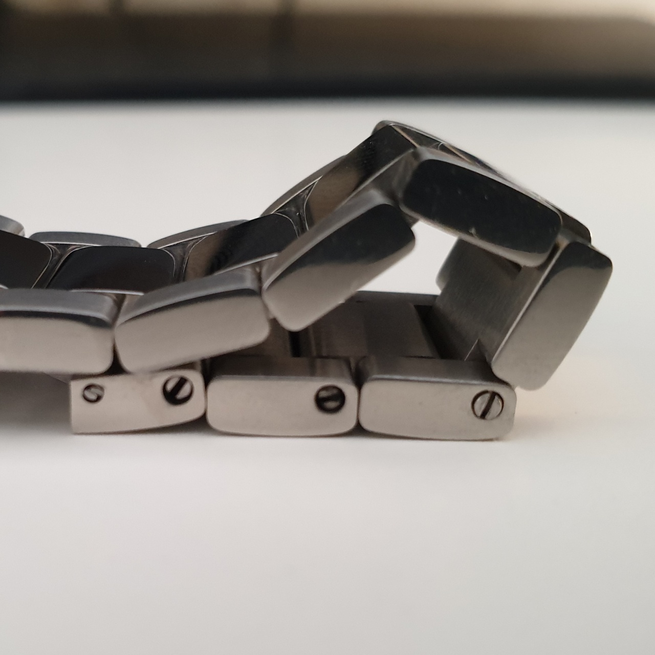 Браслет довольно приличный.Литые звенья.Плотно прилегает к корпусу.