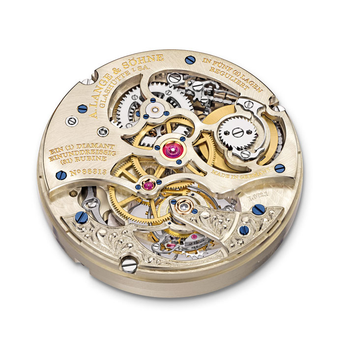 Интересно отметить, что несмотря на схожие размеры, механизм Lange изготовлен из 631 компонента, в то время как для механизма Patek понадобилось 496. Patek поддерживает интеграцию, в то время как Lange, не колеблясь, добавляют компоненты, чтобы получить идеальный механизм. наблюдаются два противоположных способа в дизайне механизмов.