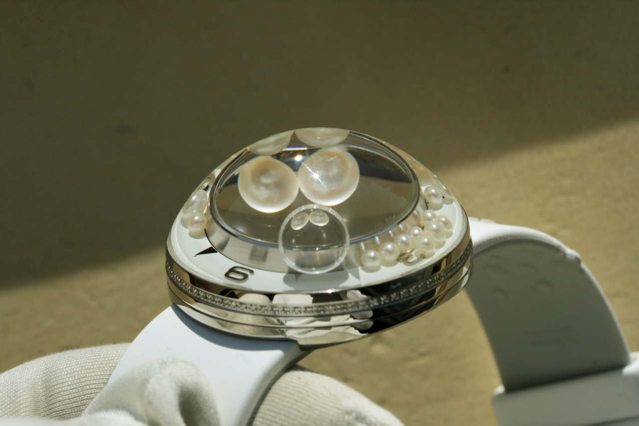 [женский "пузырь"] TECHNOMARINE AQUASPHERE * 88 бриллиантов * 28 жемчужин * белый каучук * 2 ремня