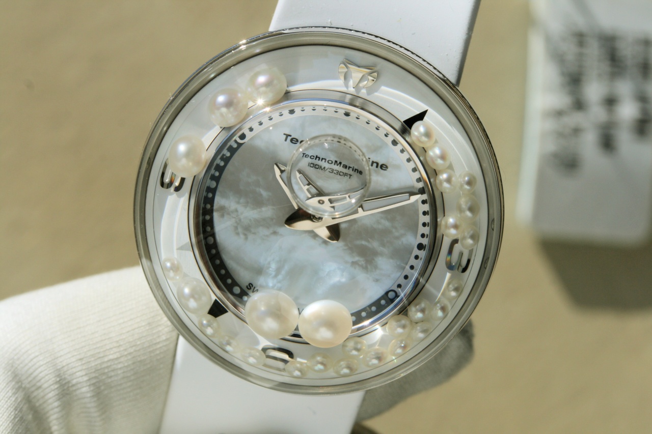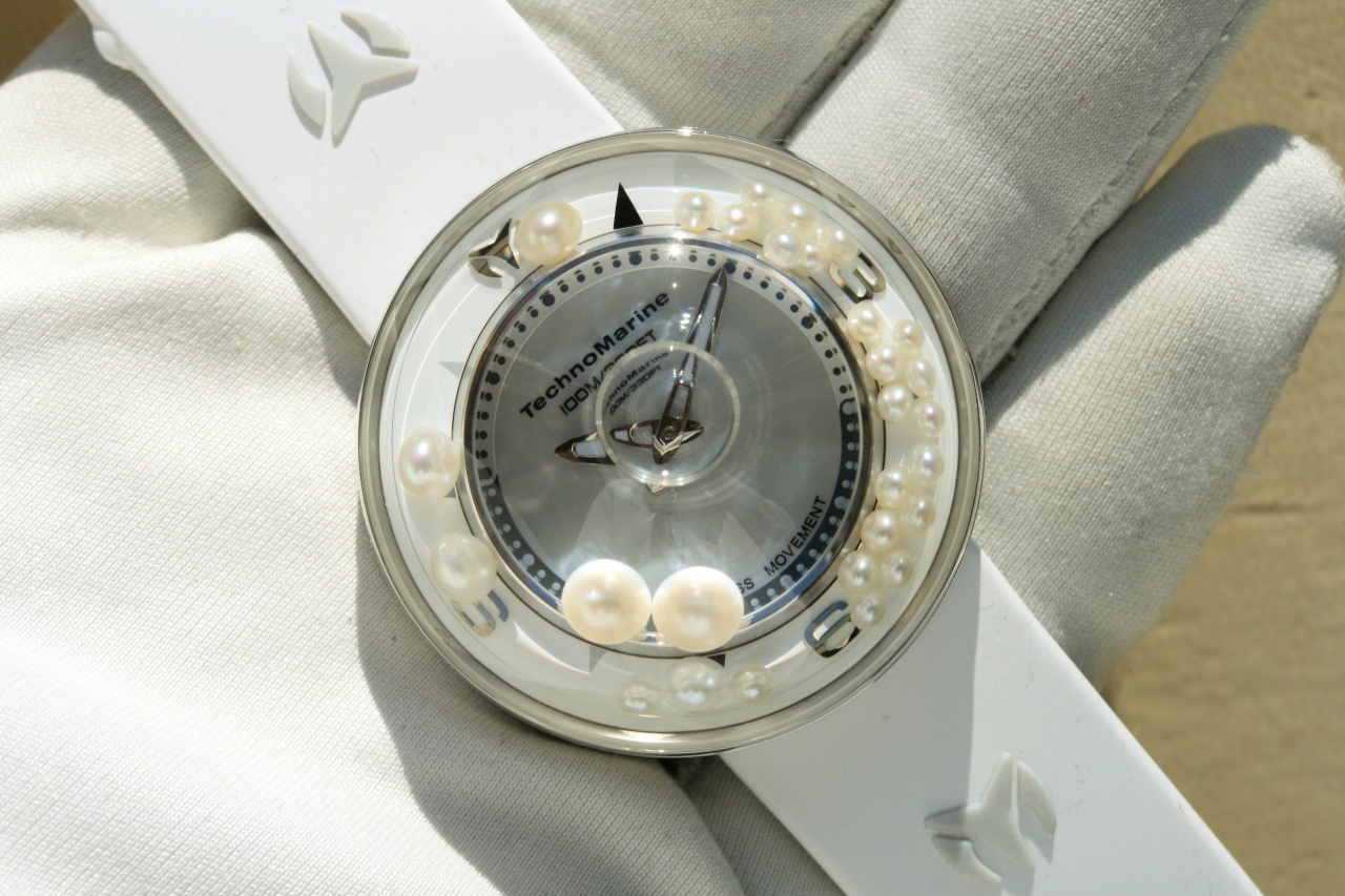 [женский "пузырь"] TECHNOMARINE AQUASPHERE * 88 бриллиантов * 28 жемчужин * белый каучук * 2 ремня