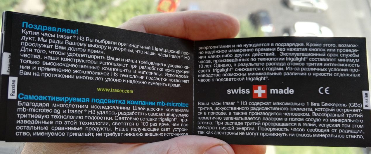 В инструкции есть абзац, посвящённый периодически всплывающей теме о безопасности тритиевой подсветки. Приведу его тут полностью: