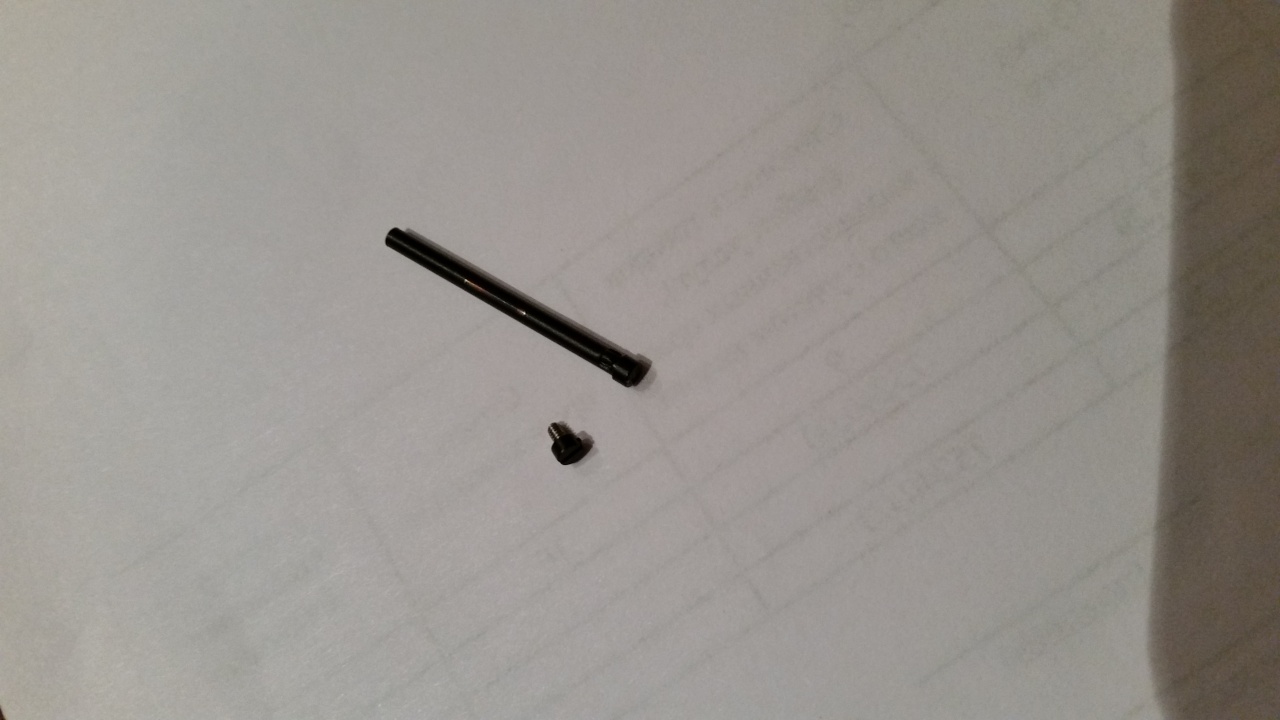 Его надо просто вытолкнуть. Эта часть винта имеет шлицы. Постараюсь вечером сделать фото винтов, чтобы было понятно.