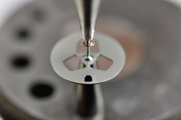 Балансовые колеса: два сделанных по специальному заказу 11-миллиметровых балансовых колеса с четырьмя традиционными регулировочными винтами, парящие над механизмом и циферблатом