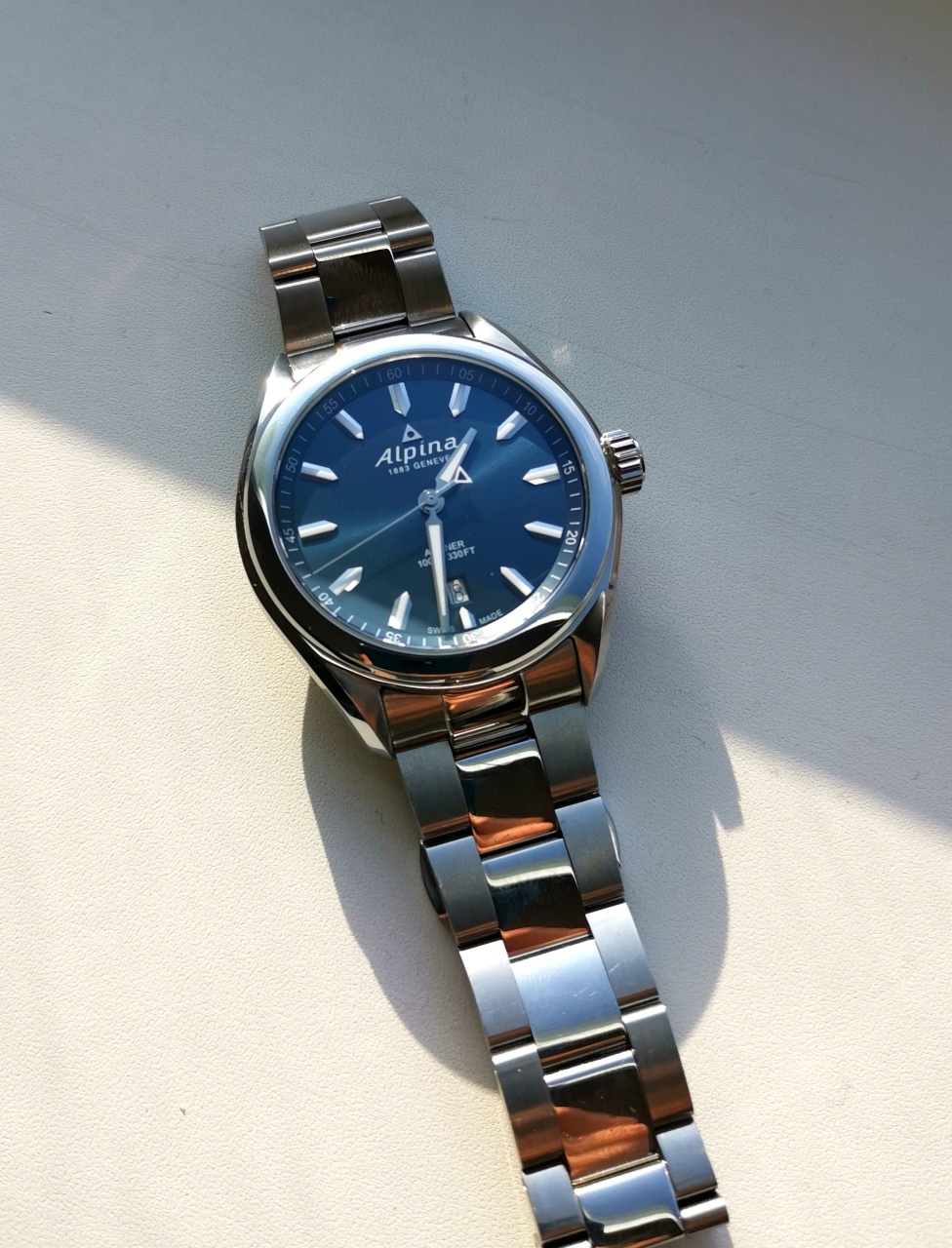 Alpina! Перед тем как их найти, я перерыл весь маркет и другие площадки. Часовой болезнью я заболел где то год назад, это оказался потрясающий мир, в котором я определил свою мечту - OMEGA AQUA TERRA(220.12.41.21.03.001). Но сейчас цель была приобрести кварцевые часы (в коллекции только механика, хотелось разнообразия и простоты использования) размером 41-42, швейцария, с синим циферблатом, хорошим браслетом и естественно сапфиром. По бюджету в целом был готов выложить до 100к, если что то по настоящему зацепит.