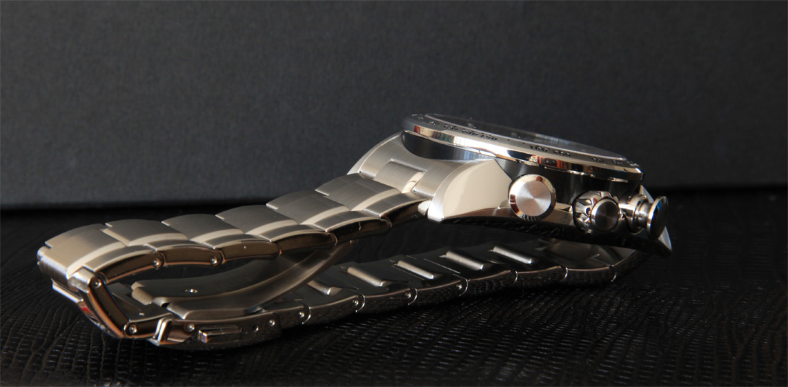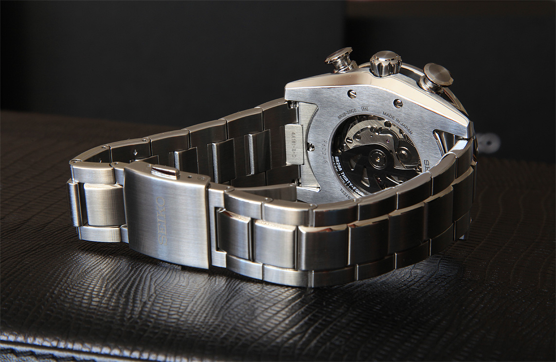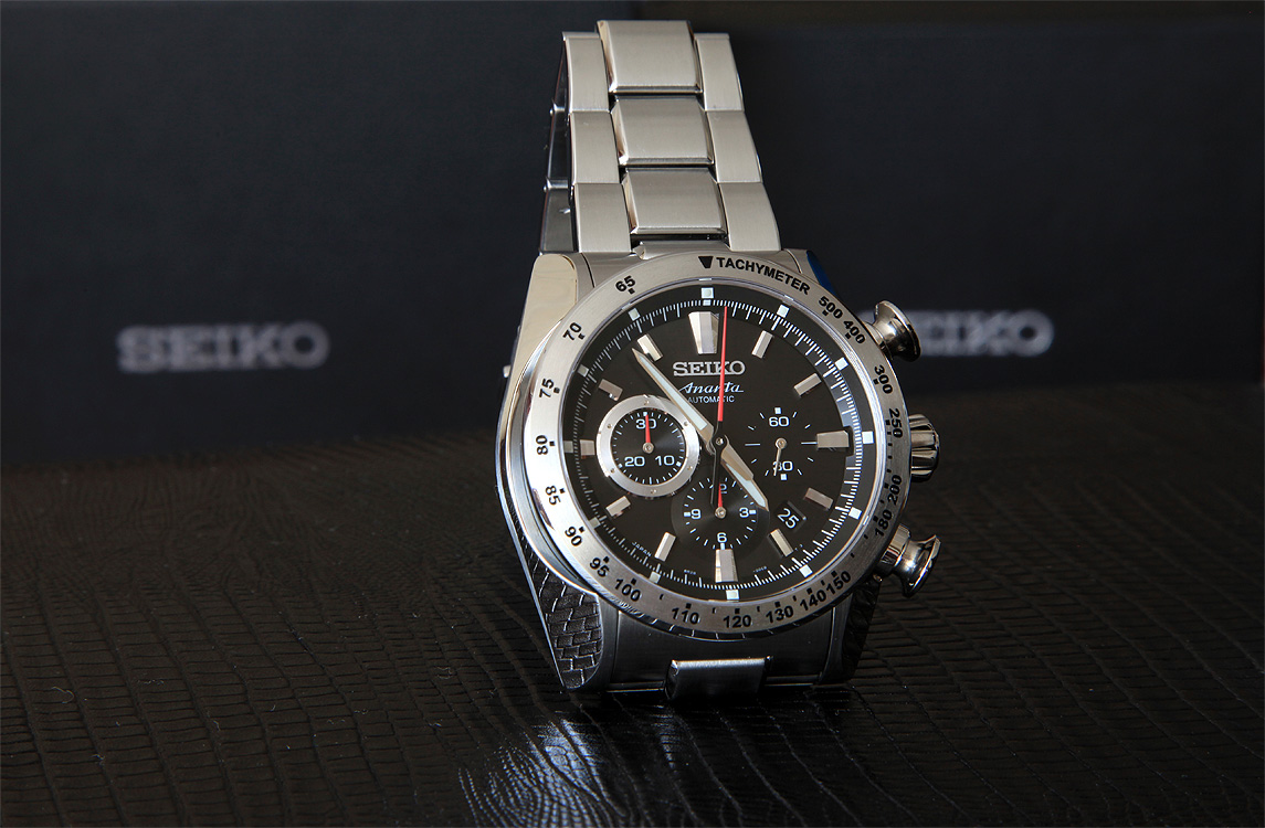 Друзья, а если серьезно... очень страстный агрегат. Первичные впечатления — цифер с другим оттенком, нежели , у Ретрограда...уходит в более черную гамму. Интересное решение окрасить «стакан» корпуса в PVD. Очень «колючие и агрессивные» кнопищи (именно, не кнопки, а кнопищи) хронографа. Красная стрелка хрона «злая» и противоположна цвету элементов цифера, но галлюциногенно вписывается в целостность цифера и только дополняет его. Было бы чертовски интересно почитать о колонном колесе, но инфу так и не нашел, может кто из профессионалов откроет тайну, а главное, пользу, сего девайса? Обработка механизма, как и у Ретрограда, лапидарна и взывает к откровениям мастеров Сейки. Хрон, после Ретрогада, не тяжел, хотя вес аппарат заслуживает уважения. Сидит идеально. А что еще? Как говорилось у Гоголя в «Женитьбе» -