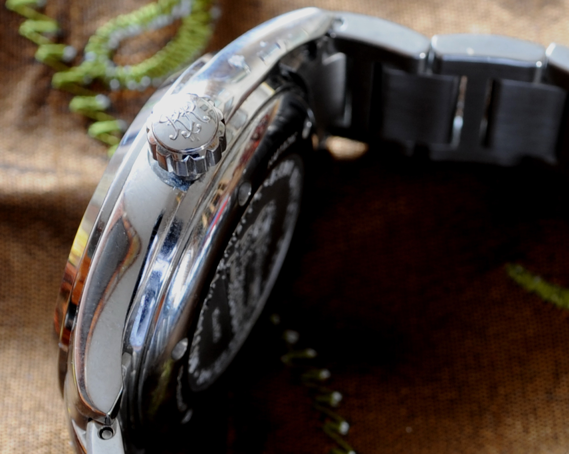 Crown: Factory Logo engraved/embossed. Sport style, screw-down (threaded).