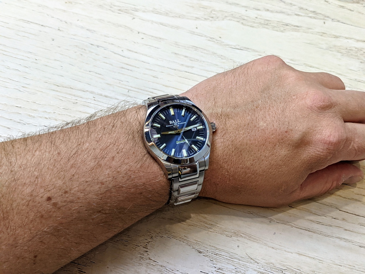 Давно (года с 17-го) подбирал что-то универсальное, в основном для поездок (раньше из командировок не вылезал): утром на переговоры, в обед на пляж, вечером в бар. Либо возил с собой двое часов, либо не надевал на несоответствующее мероприятие. Хотелось чёрное лицо, полностью сталь, хороший точный мех. Размер нужен был 40-41 мм, без больших цифр, с запасом от 70 часов, водозащита от 100 м, люм на стрелках и метках. Конечно, по моим критериям, это Устрица Вечная))). Пока копил на Ойстер он дорожал, я копил - он дорожал и так до бесконечности, а самое главное, я потом расхотел Ролекс, даже дешевле. Вот просто расхотелось покупать, еще и за такие деньги, самые подделываемые часы. Я столько подделок видел на руках, что не хочу сам себя оправдывать что у меня настоящие. Я поэтому никогда не покупал жене кожгалантерею LV. Рассматривал Зенит и Омегу (не зашли по дизайну), ИВаСи Инженер (запас хода 42), Таг (то же и ЕТА переделка), Лонжин (ЕТА, 5 атм), много чего ещё, пока, совершенно случайно, не наткнулся на обзор Ball.