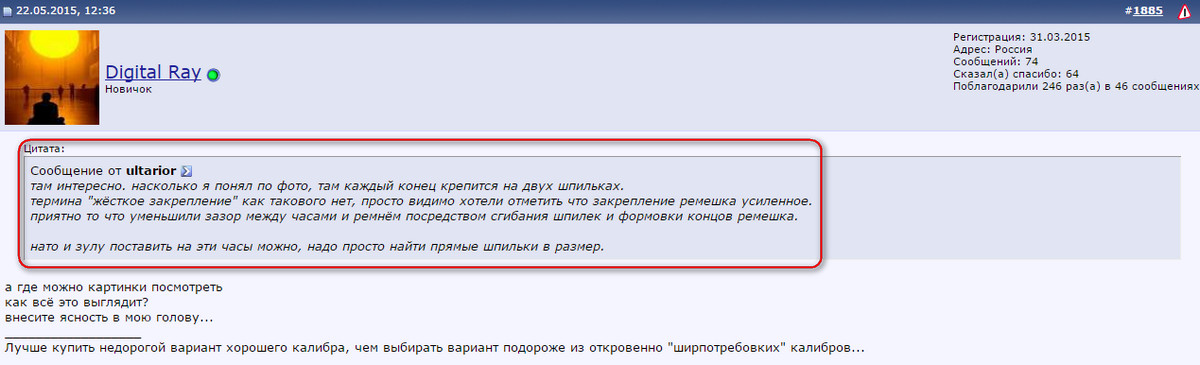 Верный он в отношении другого, практически общепринятого варианта "жесткого крепления", когда ремешок упирается в корпус часов.