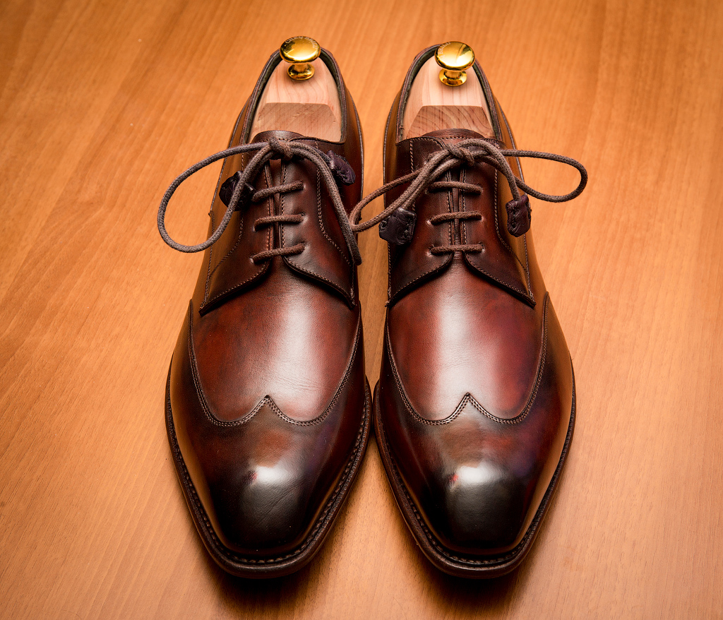 Сложилось впечатление, что либо на мысу присутствует какое-то полимерное покрытие, либо кожа хорошенько наполирована, потому как гуталин ложится не сразу и поначалу с разводами. Зато наводить глассаж оказывается достаточно просто.