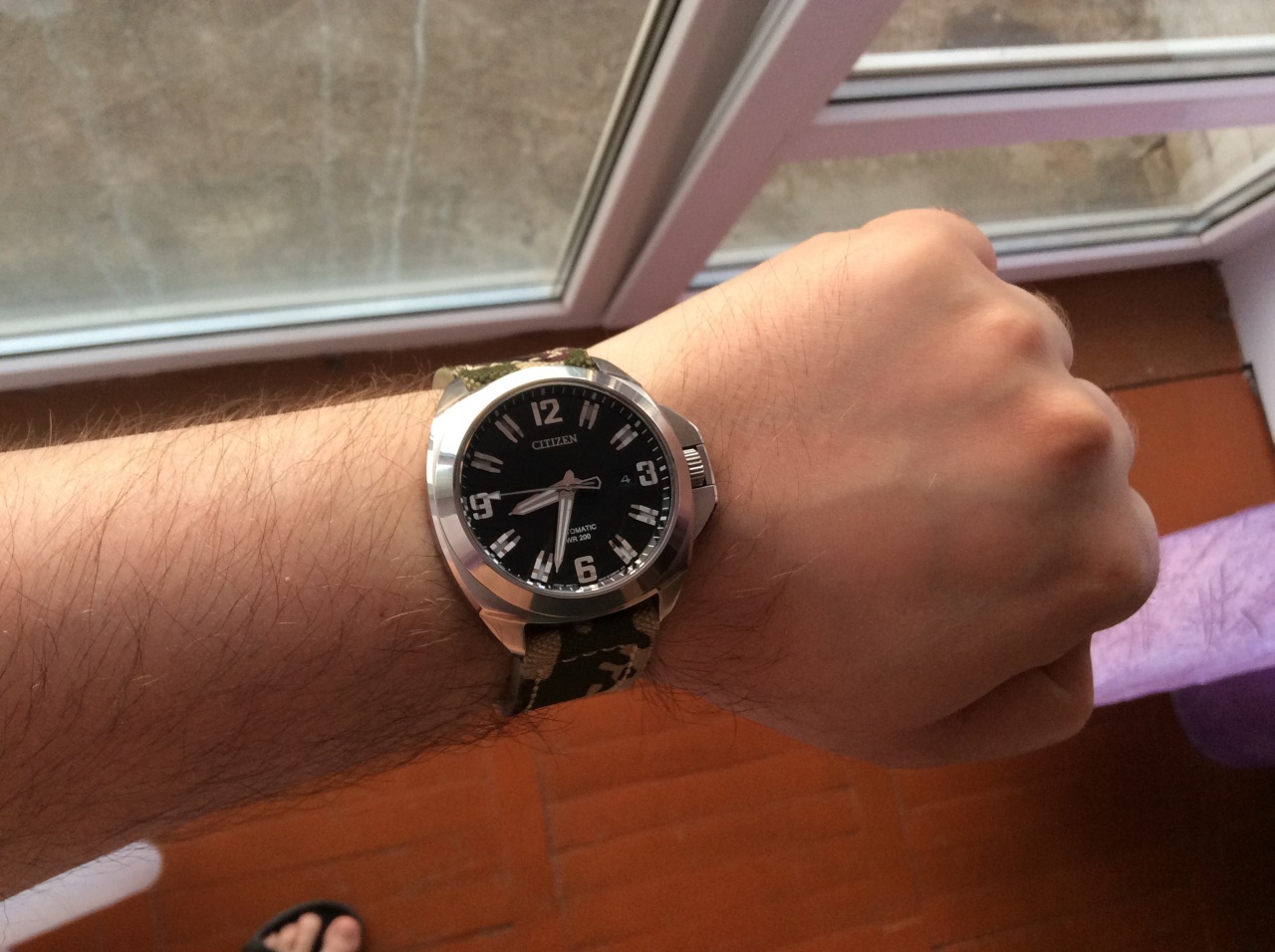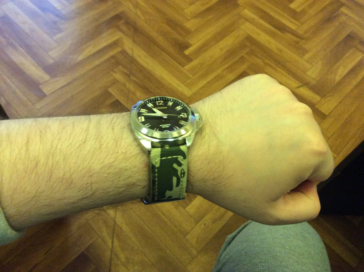 специально снимал и одевал ремешок на руку много много раз. А вот устанавливать ремень на часы оказалось чуть сложнее - в местах крепления к часам ширина ремешка оказалась 24,3 мм (поменял штангелем). Еле протиснул в общем! С Camo как-то проще, он тканевый и его можно хоть гармошкой вдоль сложить