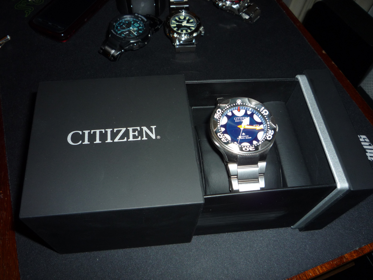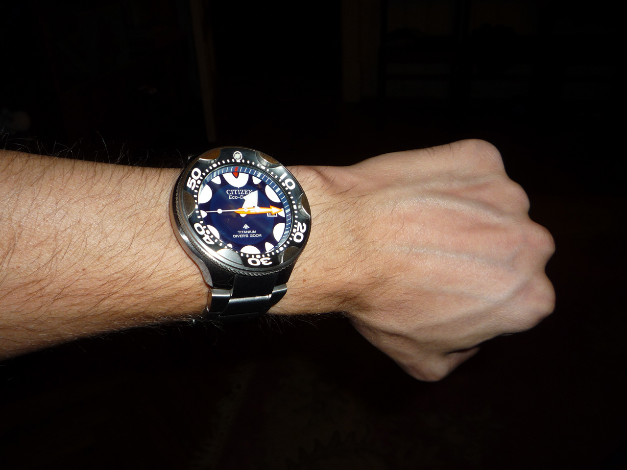 Всех приветствую. Вот и дождался я легендарную орку. Искал очень долго на титановом браслете, но все, что я находил стоило очень дорого. В районе 300-350 евро. Цена конечно не ахти, но если бы не случай - купил бы и за 350. Так Вот. Теперь главное. Часы новые, в коробочке с стикерами, все как полагается... И всего за 200 баксов включая доставку!