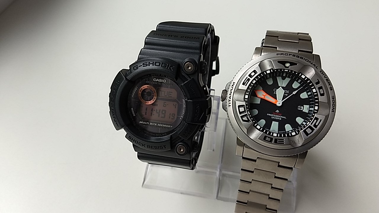 Citizen: EcoZilla Ti, JY8020-52E; Maurice Lacroix PT6058, Casio: Sea-Pathfinder SPF-60, Frogman GF-8230, Frogman GW-200Z, Frogman GW-225C, Frogman GW-200MS, GW-5000, Manaslu PRX-2000T Были: Casio King GXW-56, Seiko Sumo, MTG-S1000D