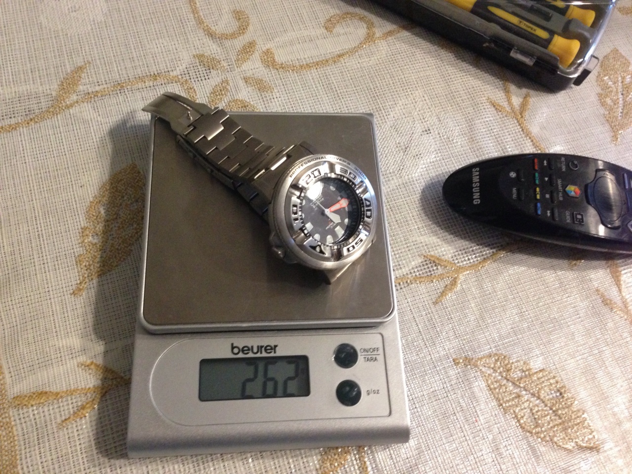 Citizen: EcoZilla Ti, JY8020-52E; Maurice Lacroix PT6058, Casio: Sea-Pathfinder SPF-60, Frogman GF-8230, Frogman GW-200Z, Frogman GW-225C, Frogman GW-200MS, GW-5000, Manaslu PRX-2000T Были: Casio King GXW-56, Seiko Sumo, MTG-S1000D