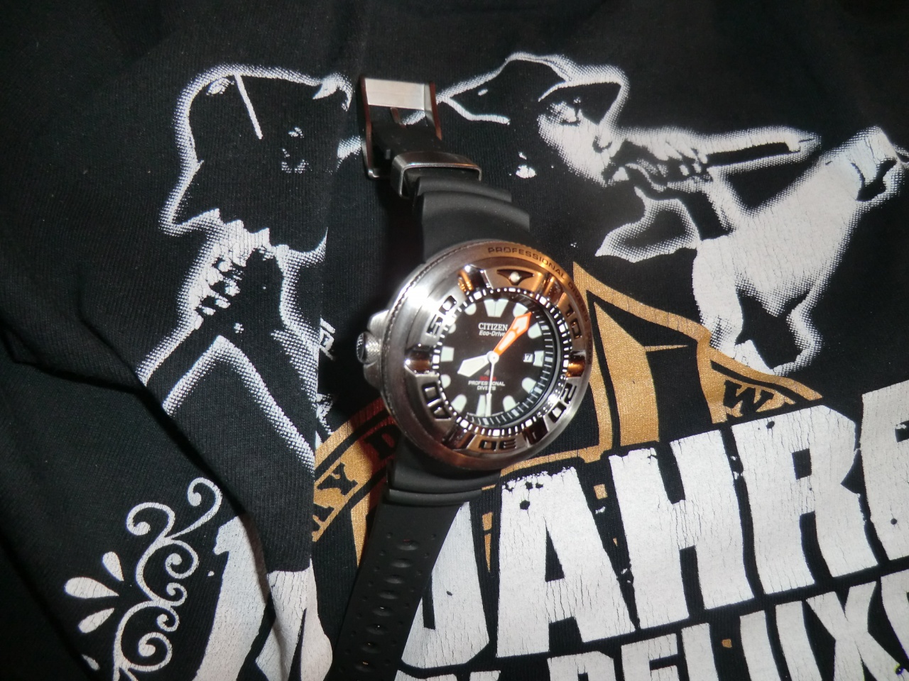Citizen: EcoZilla Ti, JY8020-52E; Maurice Lacroix PT6058, Casio: Sea-Pathfinder SPF-60, Frogman GF-8230, Frogman GW-200Z, Frogman GW-225C, Frogman GW-200MS, GW-5000, Manaslu PRX-2000T Были: Casio King GXW-56, Seiko Sumo, MTG-S1000D