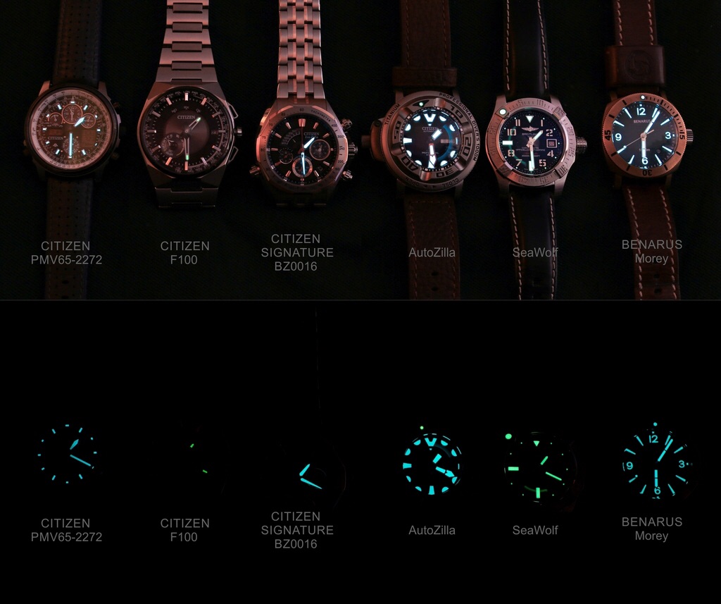 Citizen: EcoZilla Ti, JY8020-52E; Maurice Lacroix PT6058, Casio: Sea-Pathfinder SPF-60, Frogman GF-8230, Frogman GW-200Z, Frogman GW-225C, Frogman GW-200MS, GW-5000, Manaslu PRX-2000T Были: Casio King GXW-56, Seiko Sumo, MTG-S1000D