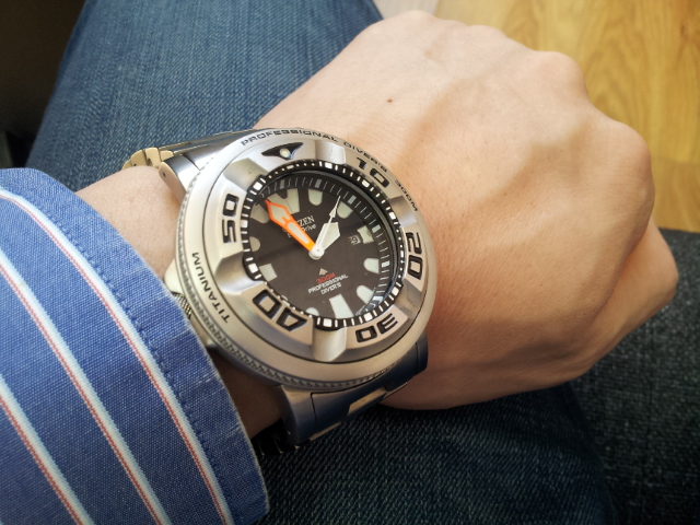 Citizen: EcoZilla Ti, JY8020-52E; Maurice Lacroix PT6058, Casio: Sea-Pathfinder SPF-60, Frogman GF-8230, Frogman GW-200Z, Frogman GW-225C, Frogman GW-200MS, GW-5000, Manaslu PRX-2000T Были: Casio King GXW-56, Seiko Sumo, MTG-S1000D