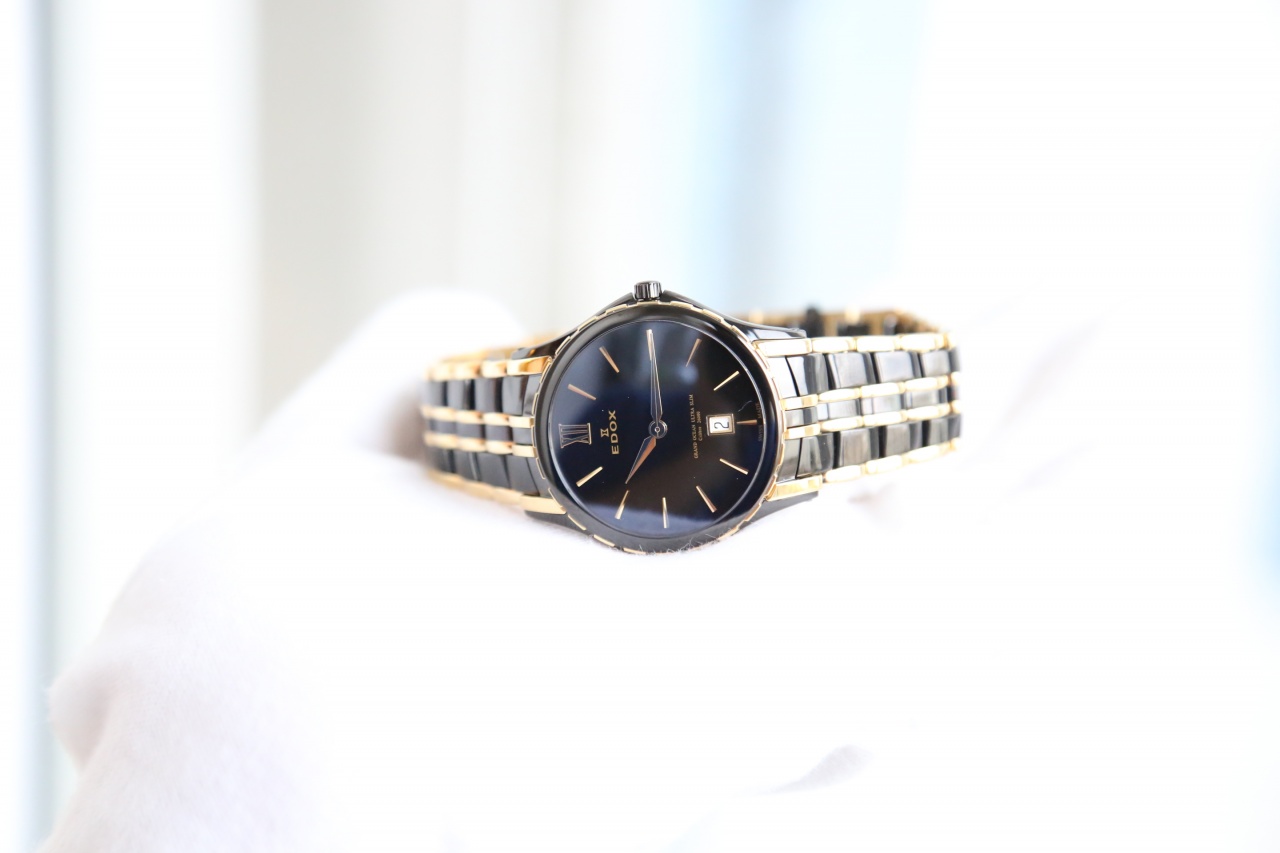 Edox - мануфактура с почти 130 - летней историей. Мануфактура находится в Ле Женеве, Швейцария. Само название мануфактуры в переводе с древнегреческого языка означает «час», отсюда и фирменное лого компании - песочные часы. На счету мануфактуры, основанной в 1884 году, ряд уникальных открытий, которые привнесли очень много своего-нативного в историю часового искусства. Например: в 1961 году создаются часы «Delfin», ставшие первыми в мире наручными часами с двойной задней крышкой корпуса с прочными прокладками и сальниками, которые установили новые стандарты для противоударности и водонепроницаемости часов. Начало 1970-го года ознаменовалось презентацией первых в мире по-настоящему универсальных наручных часов GEOSCOPE, которые помимо местного времени показывали время суток в 50 мировых столицах. 1998 году мастера марки разработали самые тонкие в мире часы с календарем «Les Bemonts Ultra Slim». Толщина калибра составляет 1,4 мм. Мировой рекорд бренда EDOX является непревзойденным до сих пор.