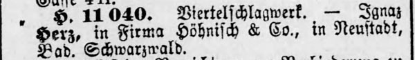 И эта фирма здесь зовется не Hönisch, а Höhnisch, хотя, возможно, это просто опечатка. Написано, что производят они пружинные регуляторы с циферблатом 6 и 7 дюймов, механизмы у которых с реечным боем, и 14-дневные напольными часы.