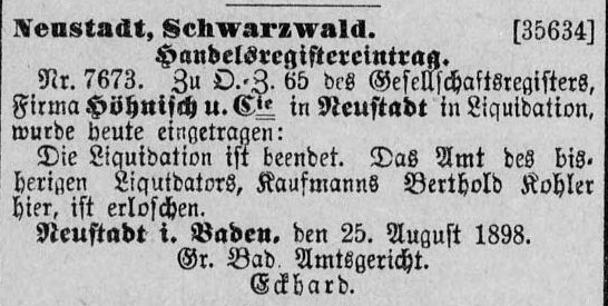 Фабрика Fürderer, Jägler & Cie из Нойштадта в Шварцвальде работала с 1855 по 1887 год. В 1887 году сменился владелец и название было изменено на «Hönisch & Cit». Последнее упоминание о нем в силе датируется 1894 годом.
