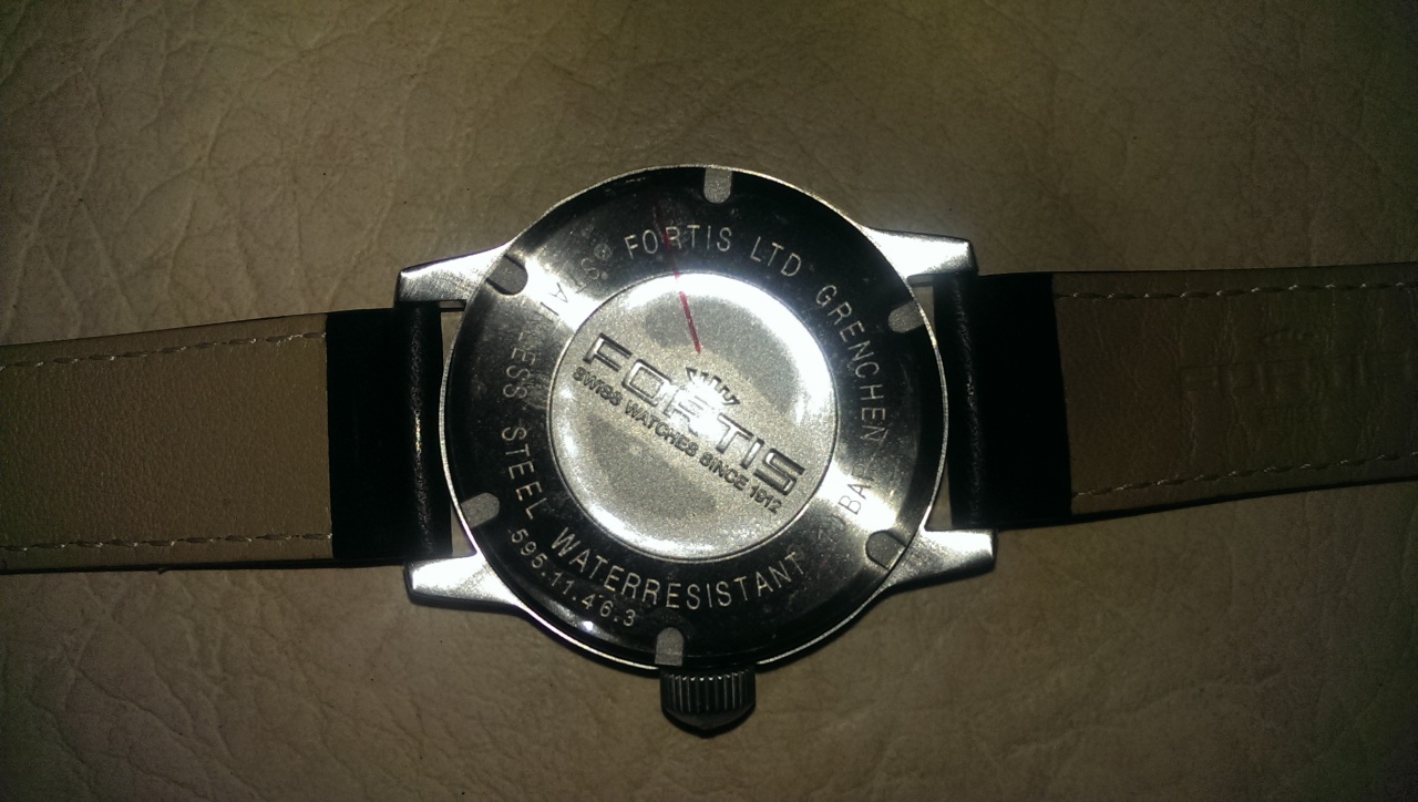 Всем доброго времени суток. Извиняюсь, если вопрос не в той теме, другой не нашел. Сегодня получил свой первый FORTIS от продавца на Ебее. Возникли сомнения в подлинности часов, так как на задней крышке указана водозащита 10 бар, а не 20 Бар, как на всех просмотренных мной описаниях и фотографиях данной модели. Ref на задней крышке 595.11.46.3 на бирке 595.11.41 L. Ремешок с внутренней стороны светло-бежевый, не такой пухлый, как на фотографиях. Продавец из Израиля, продает велозапчасти. Эти часы у него были единственными, были указаны как новые с ярлыками. Пришли в коробке с гарантийным талоном и инструкцией