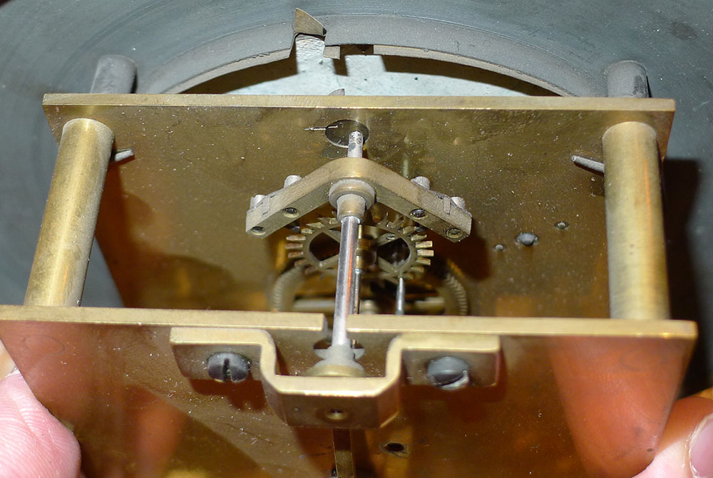 Штанга маятника наверху имеет латунную накладку треугольной формы.