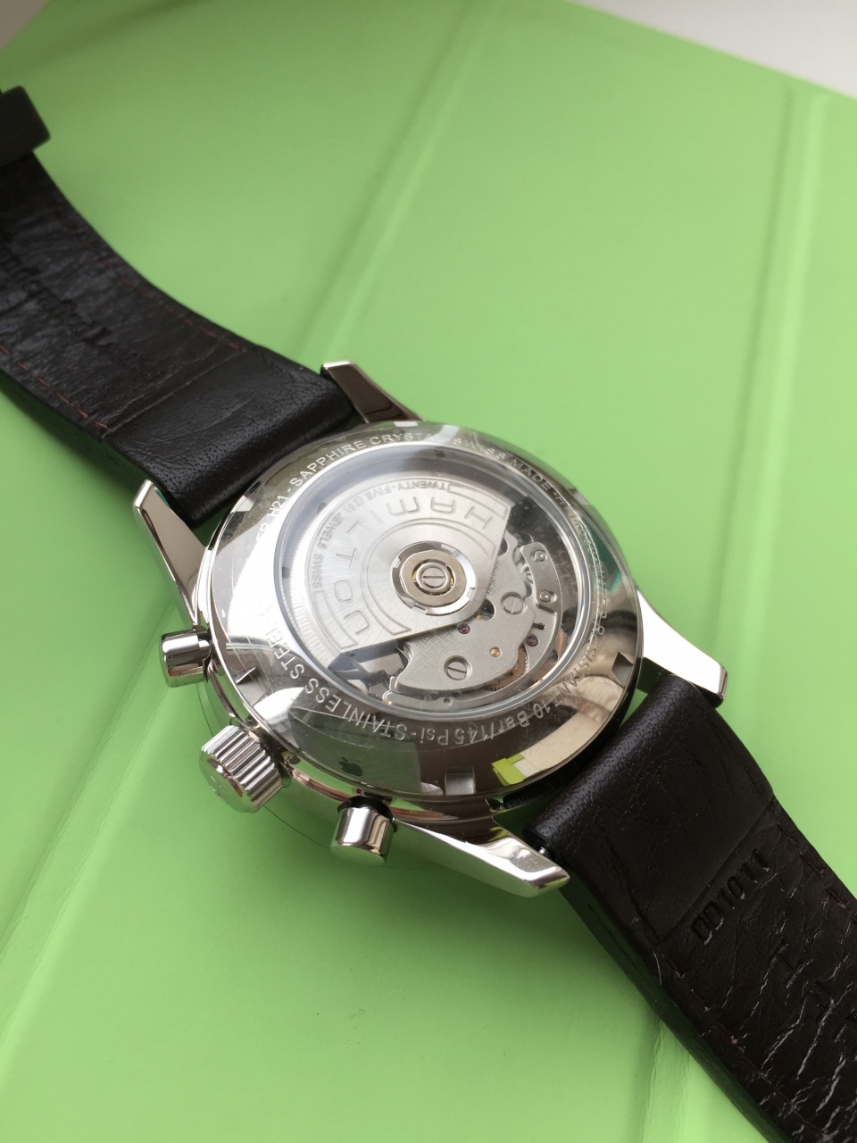 Оформление: Прозрачная задняя крышка, застежка пряжка Khaki Field Auto Chrono
