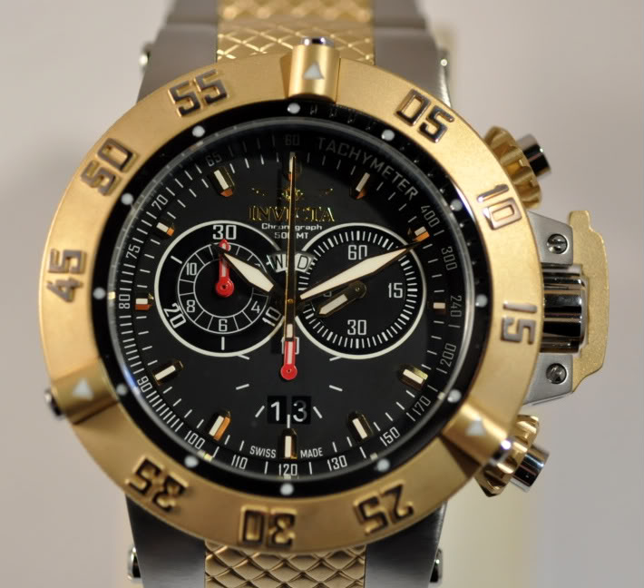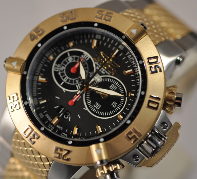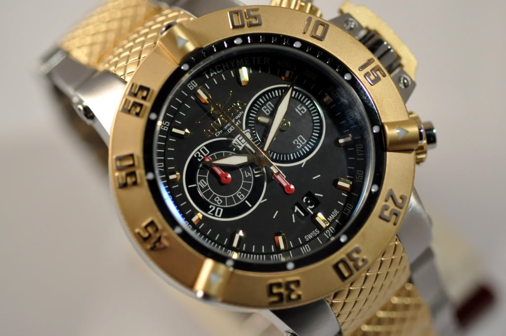 Продаю вот такую красоту -кварцевый хронограф Invicta Subaqua Noma III 4698.Оригинал, никаких копий! Настоящий дайвер - 500 м! SWISS MADE..Механизм Ronda 5040D.Швейцарский кварц Стрелки и разметка с люминесцентным покрытием. Вращающийся с фиксацией в одну сторону позолоченный безель и закручивающаяся заводная головка. Циферблат: черный, стрелки и часовая разметка позолоченные, люменисцентные.Окно указателя даты у цифры 6. Хронограф: 1/10 сек.,60 сек.,30 мин .Специальные водонепроницаемые устройства на кнопках и заводной головке. Новые, в пленке, коробка, инструкция , гарантийный талон. Крупные/тяжелые.Сапфир с антибликовым покрытием.. Сталь+ позолота (23К золото), браслет. Диаметр 50, высота 17 Цена в интернет магазинах от 45000. Продаю за 26000 рублей. Отправка в регионы наложенным платежом.Вопросы в личку.