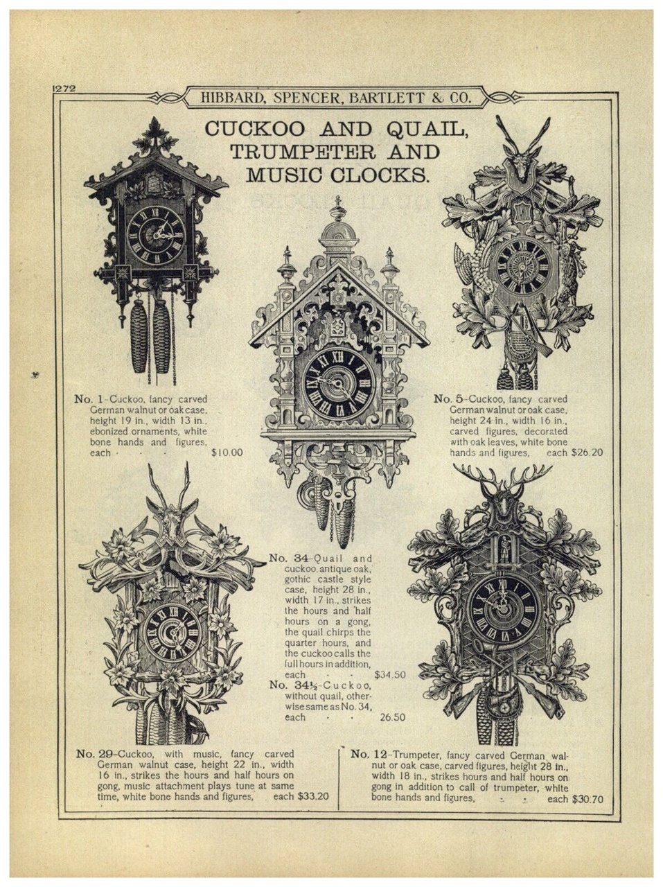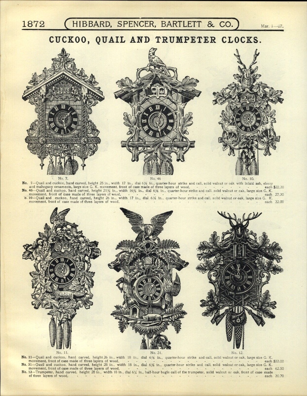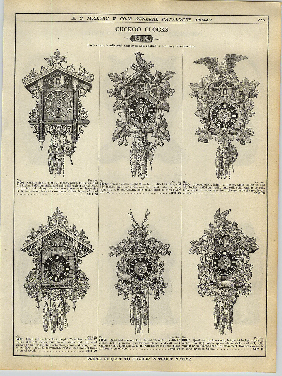 Каталоги Настенных часов с кукушкой, трубачем, кукушка-перепел в 30мин. G.K. и другие