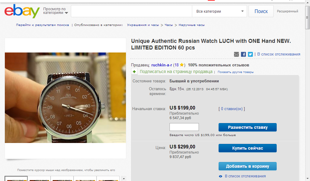 | Кварцевые часы "Ракета" с позолоченным механизмом маркировки "Заря" и "Луч" | АЛЕКСАНДР2 | Ракета | 30 | 06.03.2012 23:38 |